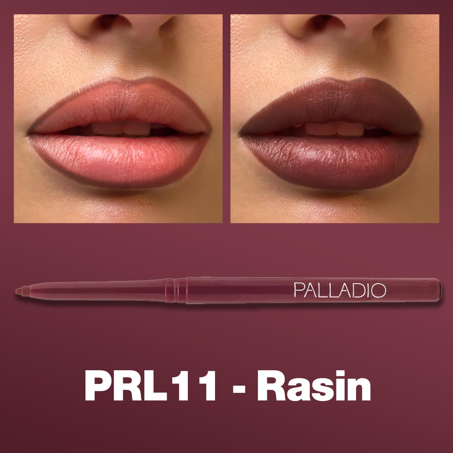 Palladio Retractable Waterproof Lip Liner High Pigmented and Creamy Color Slim Twist Up Smudge Proof Formula with Long Lasting All Day Wear No Sharpener Required, Raisin, 1 Count