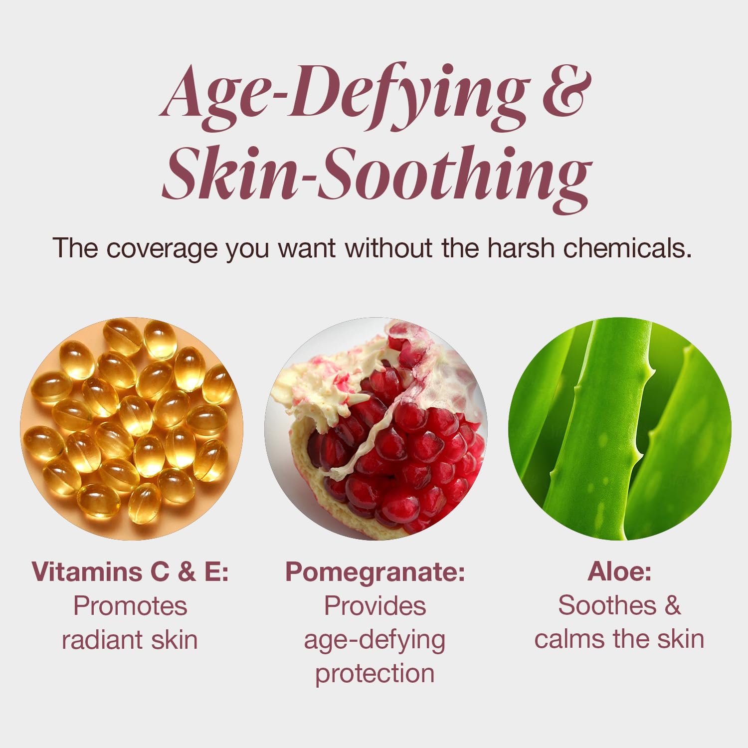 - Natural Formula: Our anti-aging compact is made with pomegranate, white tea, and sea kelp to boost radiance and natural glow. Offers translucent to full coverage for a flawless matte finish and skin smoothing effect.