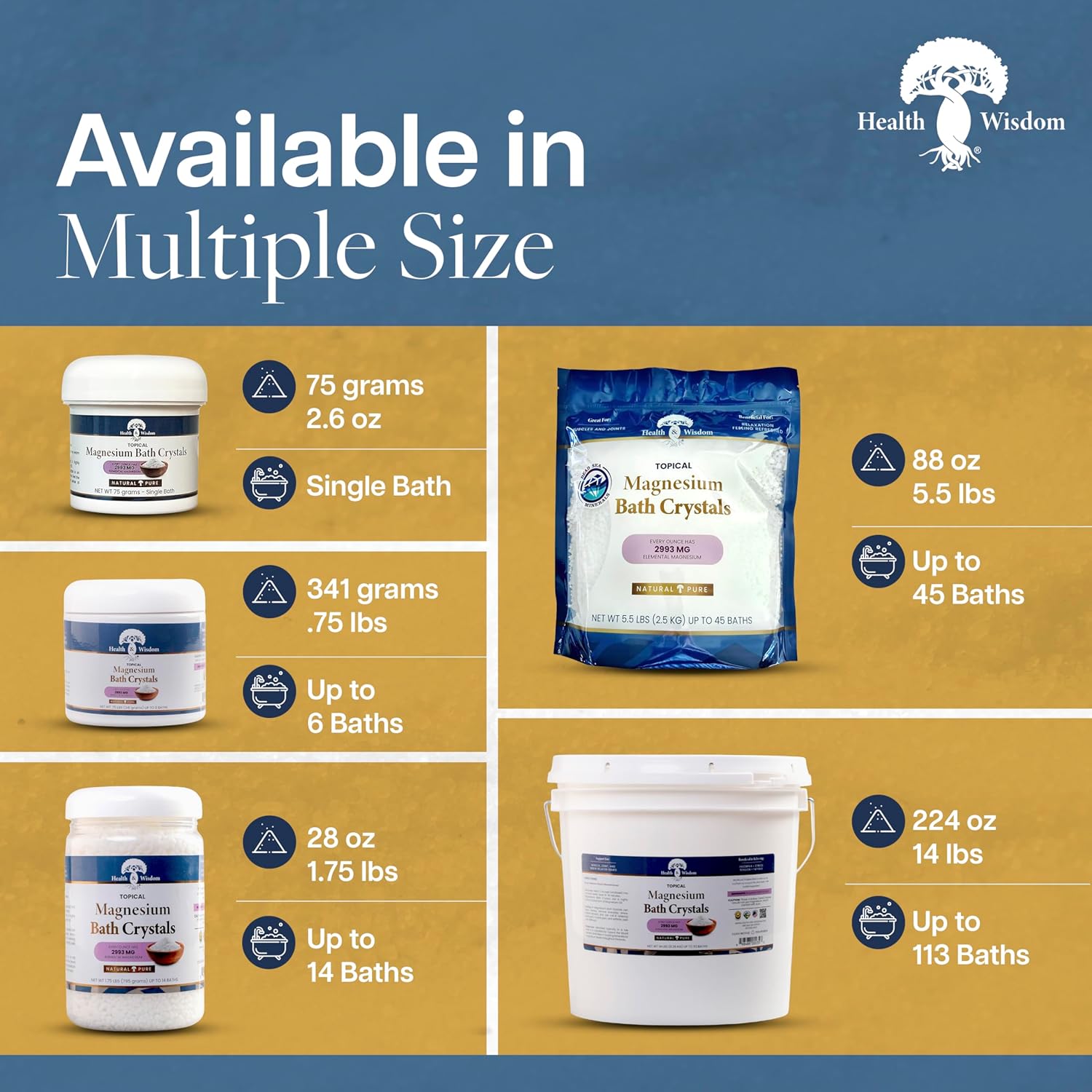 Health and Wisdom Magnesium Bath Crystals - Bath Salts with High Concentration & Enhanced Absorption for Muscle & Joint Relief - Dead Sea Sourced - Unscented - 5.5 lb Bag - Up to 45 Uses
