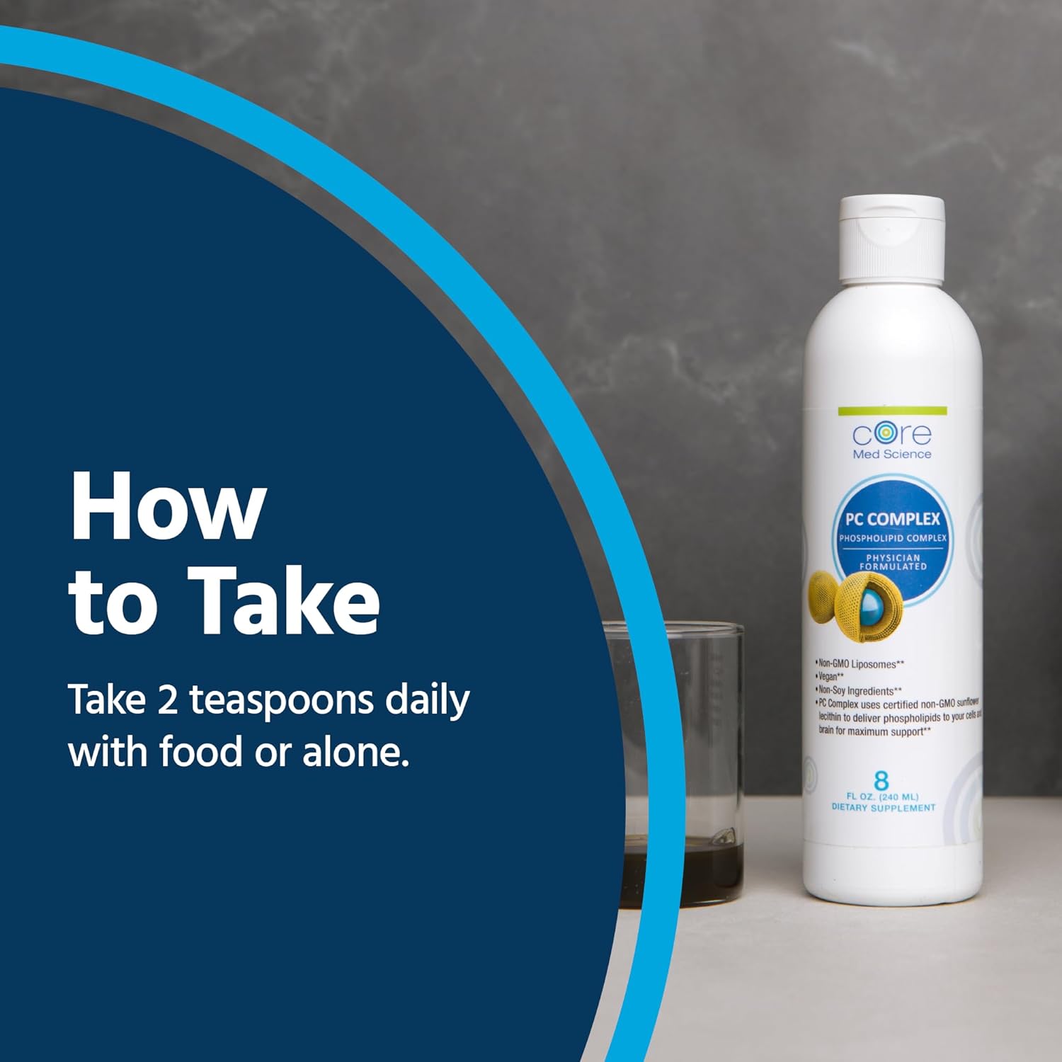 - THE BUILDING BLOCKS OF CELL MEMBRANES: Core Med Science’s PC Complex liquid supplement is designed to help your body’s cell-making processes by providing a mix of phospholipids, one of which includes Phosphatidylcholine, the main building block of cell membranes. Our PC Complex is formulated with liposomal technology for quick and efficient absorption. One 8oz bottle (30 servings).