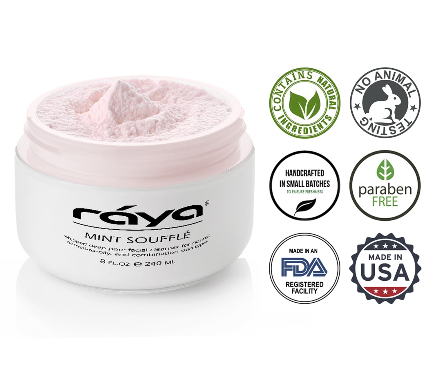 Raya Mint Soufflé Facial Cleanser 8 oz (102) | pH Balanced Face Wash for Oily and Combination Skin| Helps Clear Clogged Pores and Smooth Complexion