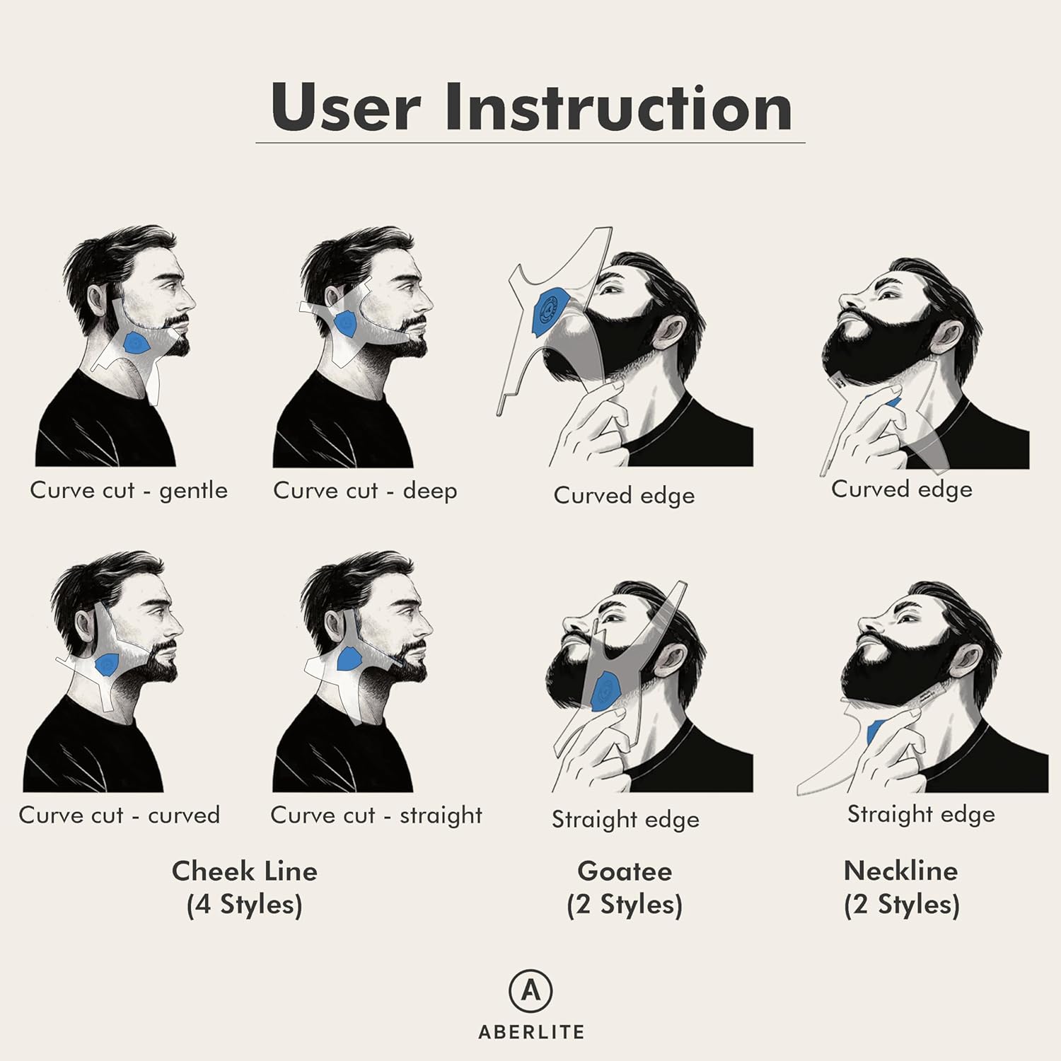 - Many Styles & Long Edges (★Instructional Videos Available Online★): This shaper allows you to choose the design you want! It can give you multiple options for trimming. The long edges and design makes the tool easy to place and hold on any facial structure. You can trim perfect beard/hair fade styles, curved or straight cheek lines, extra clean neck lines, curved or straight goatee lines, and nice sideburns. One shaper fits all!