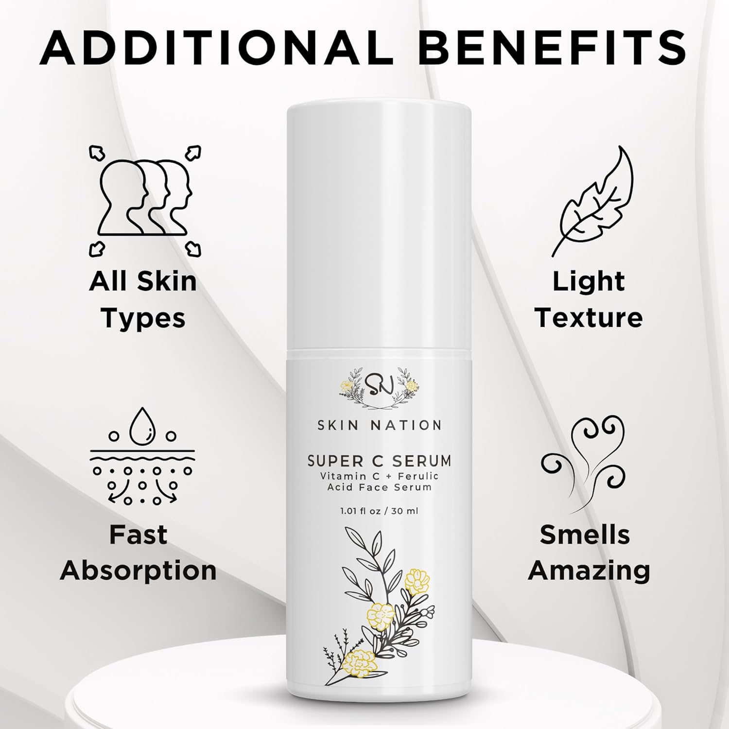 - Smooths Your Skin's Texture for a Polished Look: Vitamin C and ferulic acid may help refine uneven texture and blemishes, supporting a smoother, more vibrant complexion that feels revitalized and ready to shine with every use.