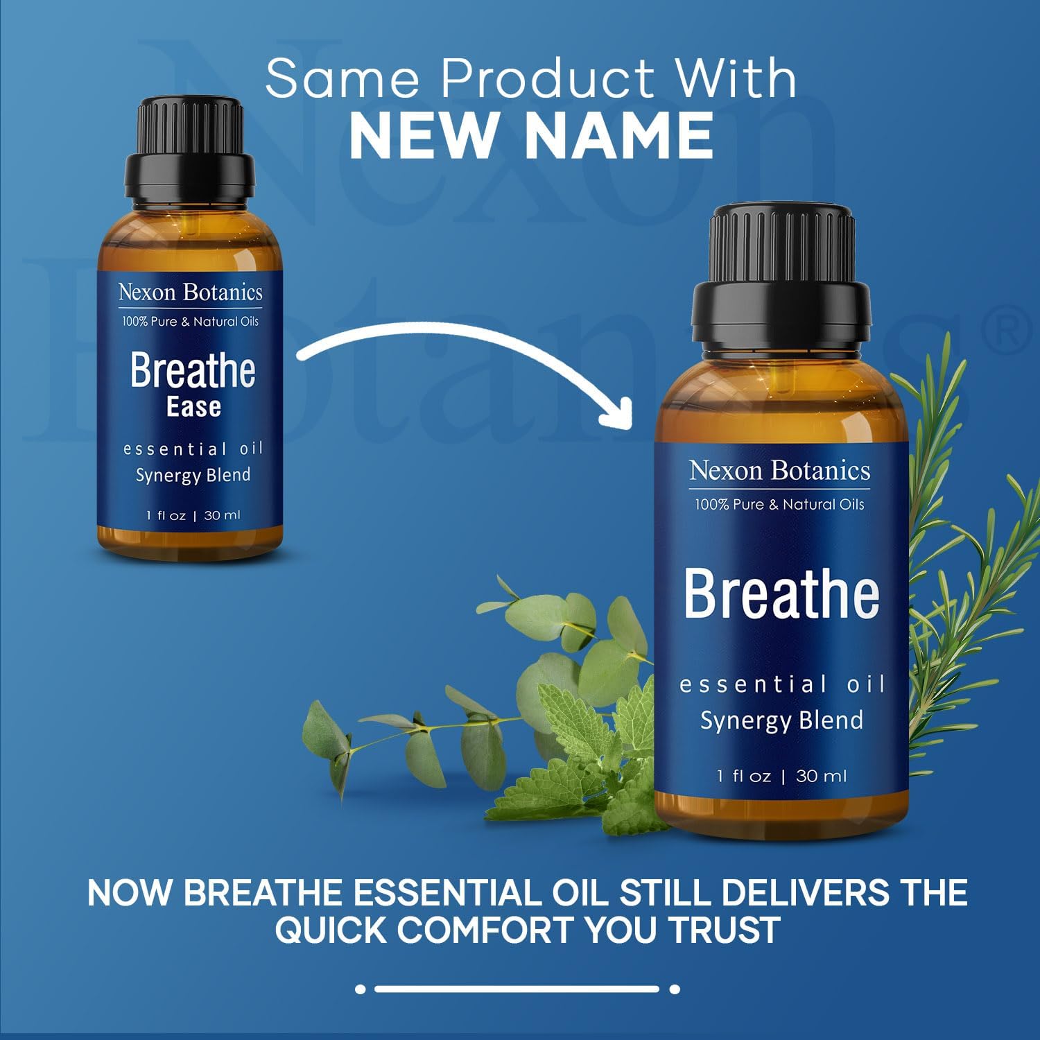 - Nexon Botanics Breathe Essential Oil Blend consists of a proprietary combination of Rosemary, Peppermint, Niaouli and Eucalyptus essential oil; All oils are therapeutic grade.