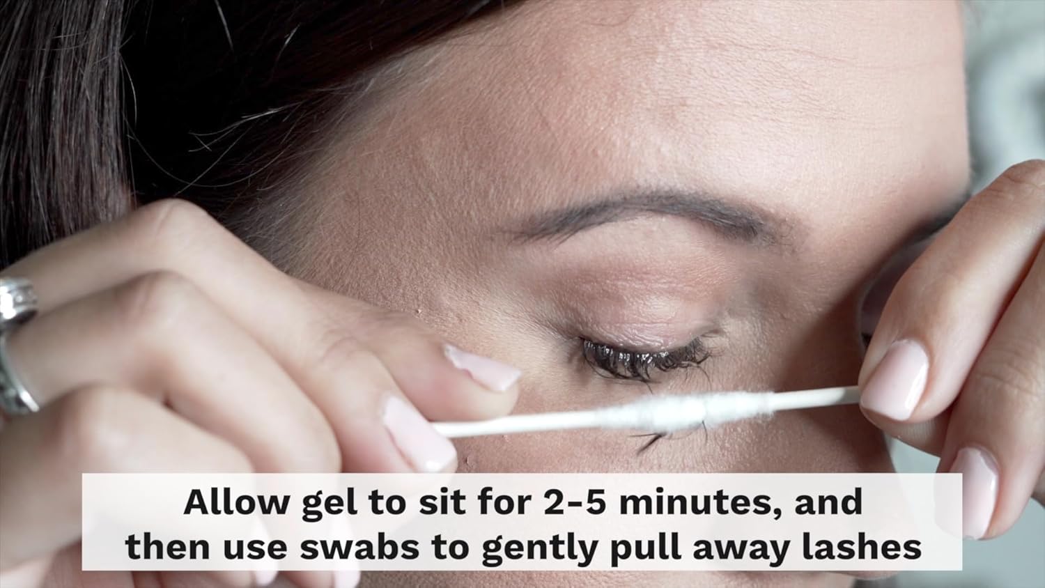 - Apply Β½ mm Above Eyeline - Apply our eyelash extension gel remover slightly above the eyeline and be sure not to get any in you or your clients. If the eyelash remover gel gets into eyes, you must rinse eyes immediately with warm water to flush out any eyelash gel remover.