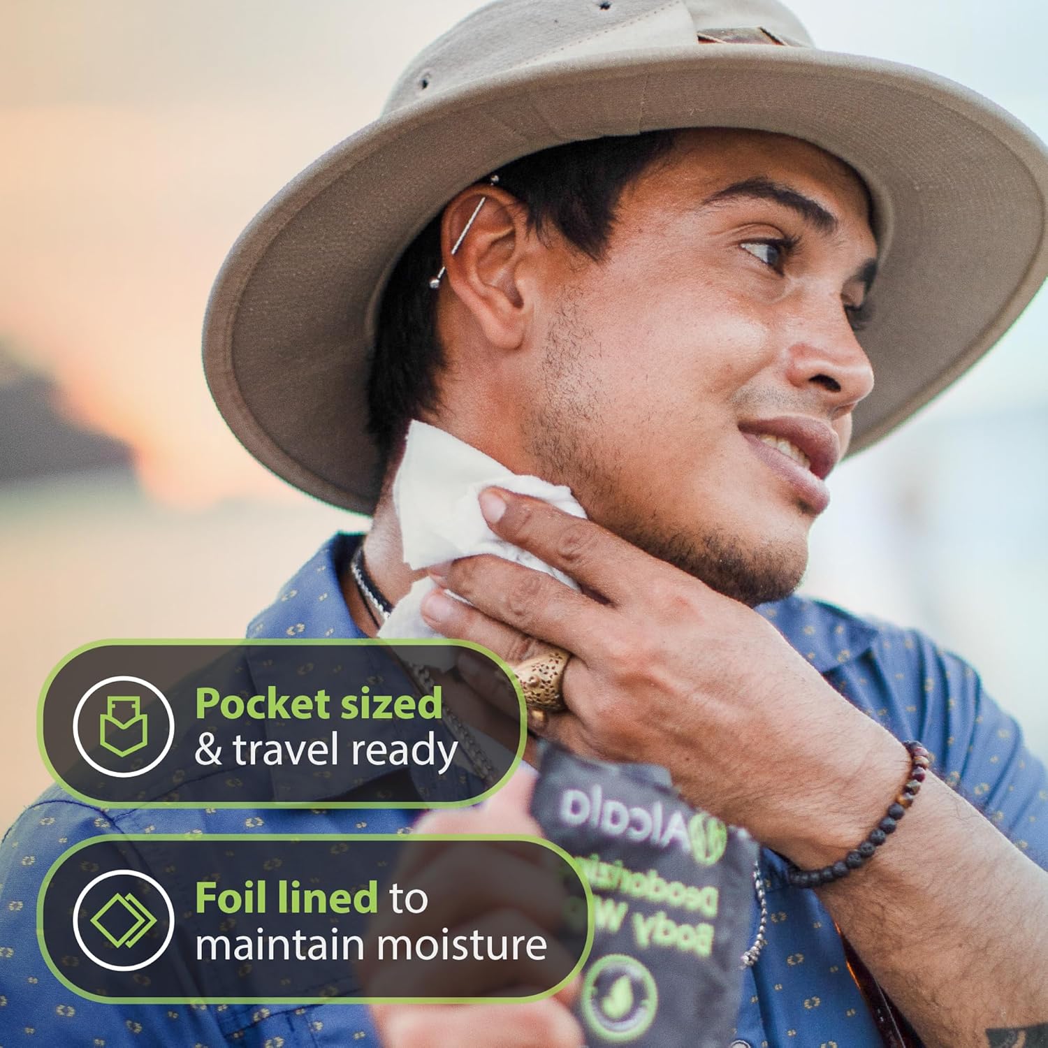 - READY TO HIT THE TRAILS? Don't forget your Alcala travel wipes! Perfect for hikers and outdoorsmen. They are large enough to clean your entire body, leaving you feeling fresh and clean after a long day of activity. Pack them in your backpack or camping gear for a refreshing and convenient shower anytime, anywhere. Say goodbye to dirt, grime, and sweat while on the trail. Don't settle for less, get Alcala camping wipes today and experience the ultimate cleanliness and comfort!