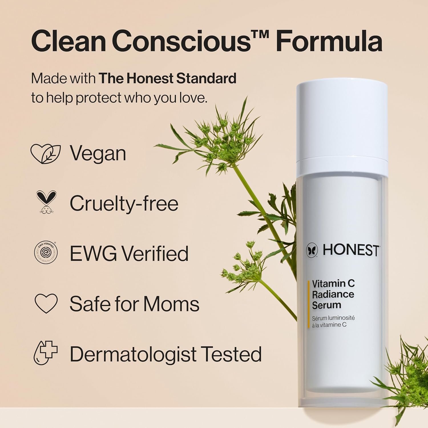 Honest Beauty Vitamin C Radiance Serum | Improves + Brightens Skin Tone and Complexion | Gentle for Sensitive Skin, Fragrance Free, Vegan | 1 fl oz