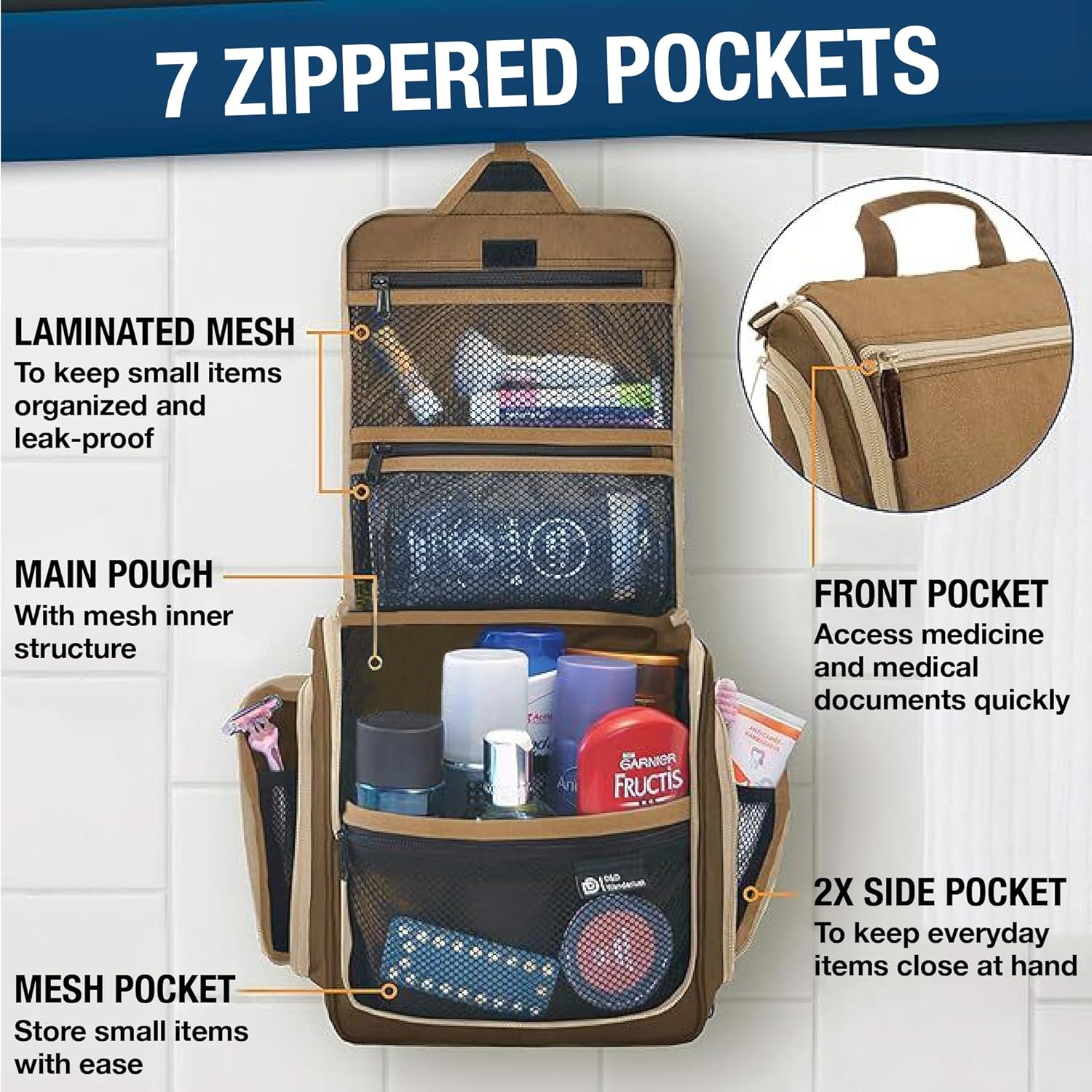 D&D Hanging Travel Toiletry Bag for Men and Women – Large Cosmetics, Makeup and Toiletries Organizer Kit with 10 Compartments, YKK Zippers, XXL Metal Swivel Hook, Water-Resistant Nylon