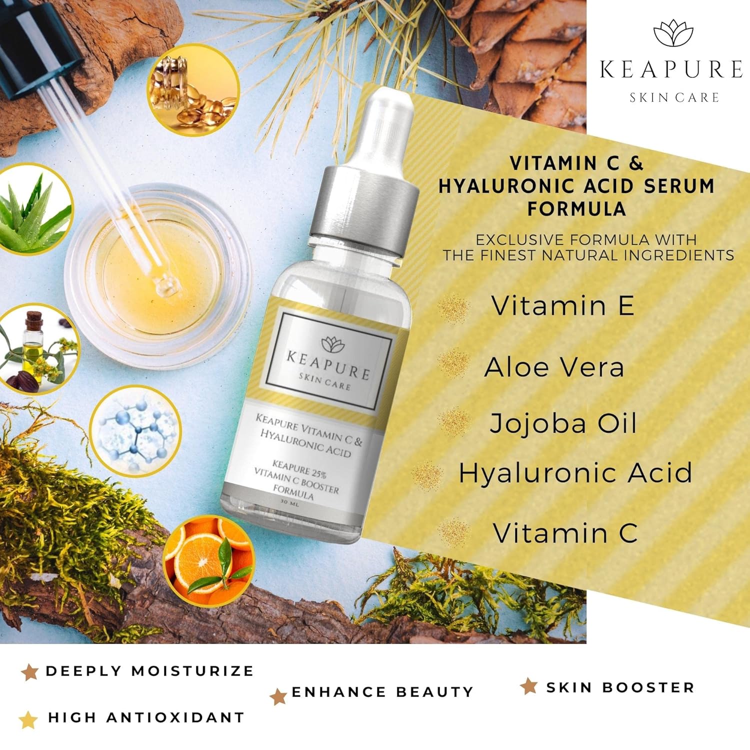 - βοΈππππ πππππ: Vitamin C for the face with Hyaluronic Acid is a powerful antioxidant serum combined with Ferulic Acid and Jojoba Oil that holds weight water up to 1000 times. Smooth and gentle enough to make sure a comfortable experience while using