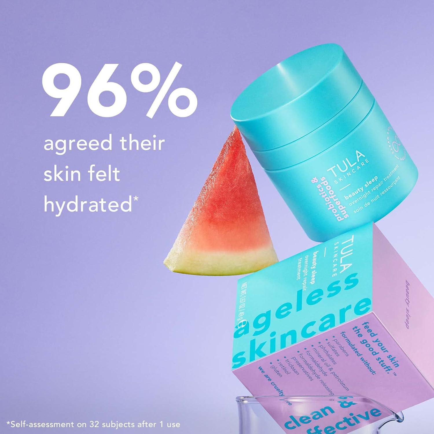 TULA Skin Care Beauty Sleep Overnight Repair Treatment - Anti-Aging, Night Cream, Contains Natural Peptides, AHAs, Retinol, Vitamin C to Reduce the Appearance of Lines and Dull Tone, 1.7 oz.