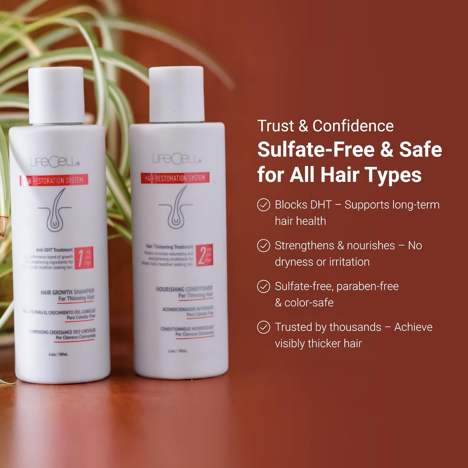 LifeCell Hair Restoration System – Anti-DHT Shampoo & Conditioner for Thicker, Fuller Hair – Strengthens & Revitalizes – Supports Scalp Health & Hair Growth