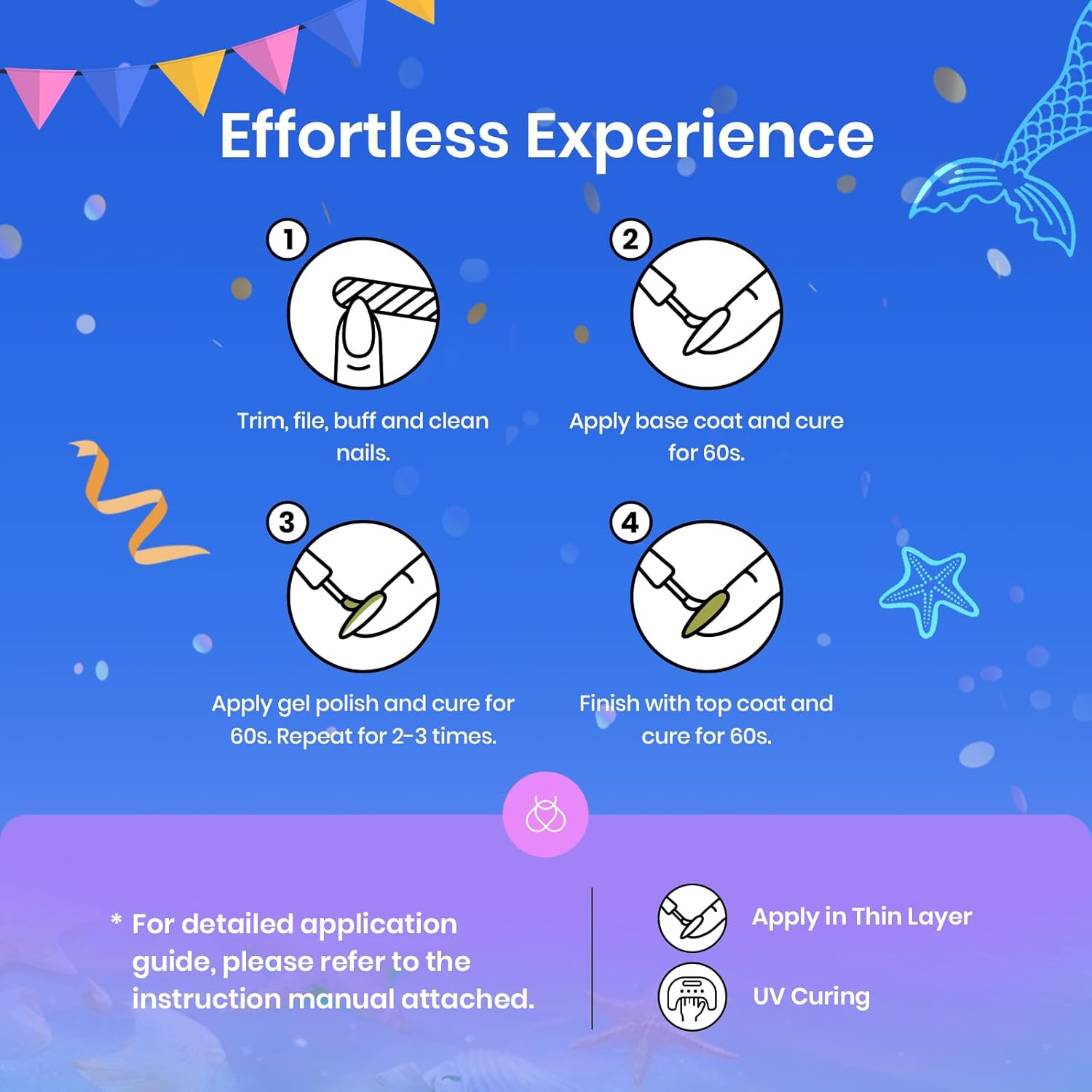 - Soak-off uv Gel Nail Polish: Pink gel nail polish kit, purple, green, blue sparkle gel polish need to be cured under a nail lamp. With proper application, last at least 4 weeks. Kindly note: After opening, valid for 12 months.