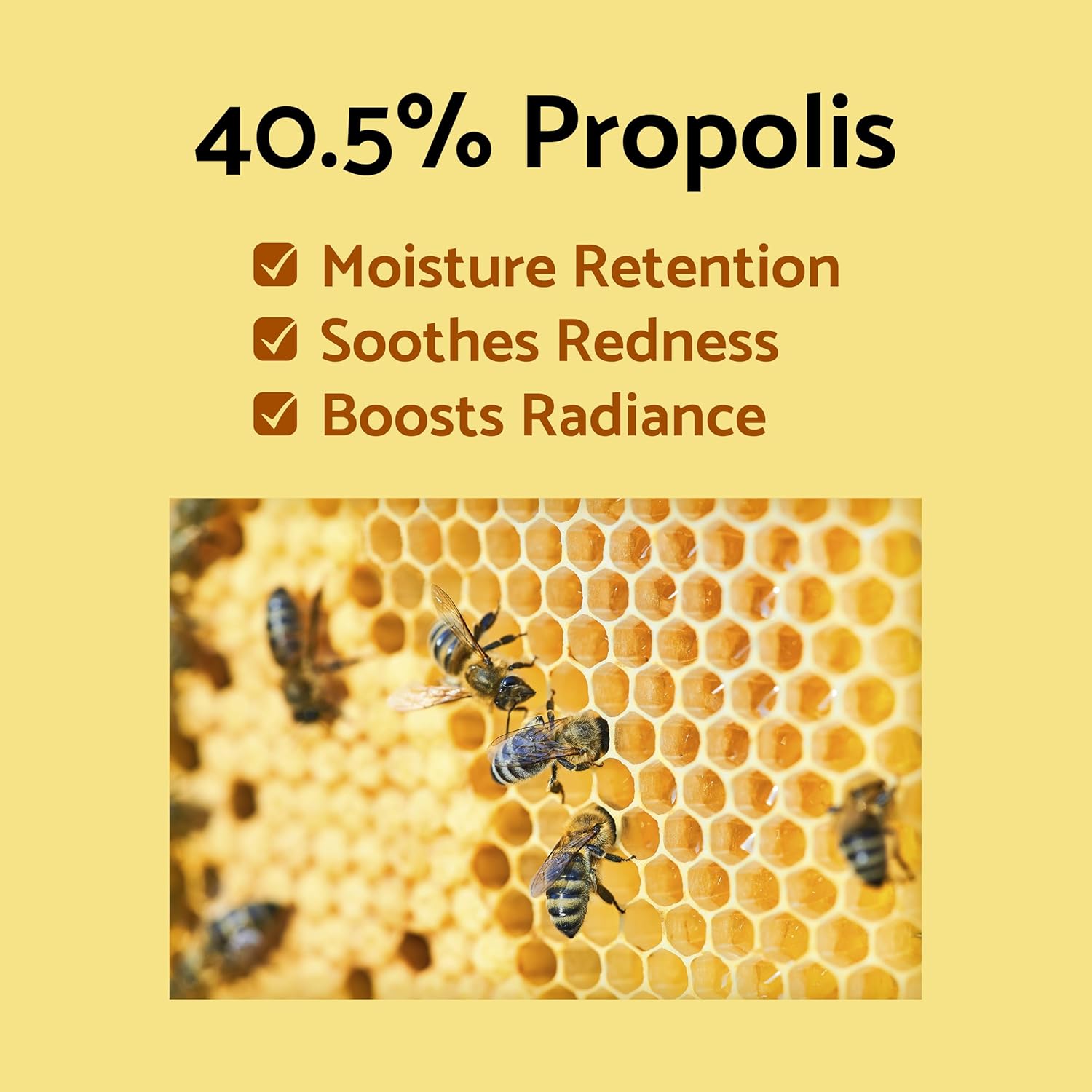 - π― Potent Plant-based Formula: Features a rich blend of 40.5% Propolis Extract and 9.2% Vitamin Fruit Extract, enhanced with 300ppm of Idebenone (Hydroxydecyl Ubiquinone), to deeply nourish, enhance radiance and revitalize the skin. Ideal for sensitive, oily, and acne-prone skin types.
