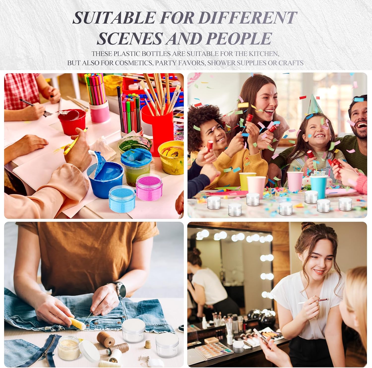 - Product Size: each wide-mouth plastic containers jars measure 5.2 cm/ 2.05 inches in diameter, 3.3 cm/ 1.3 inches in height wide, the volume is 1 oz; These are empty jars, good for meal preparation, condiments, DIY crafts, creams, butters, lotions and others