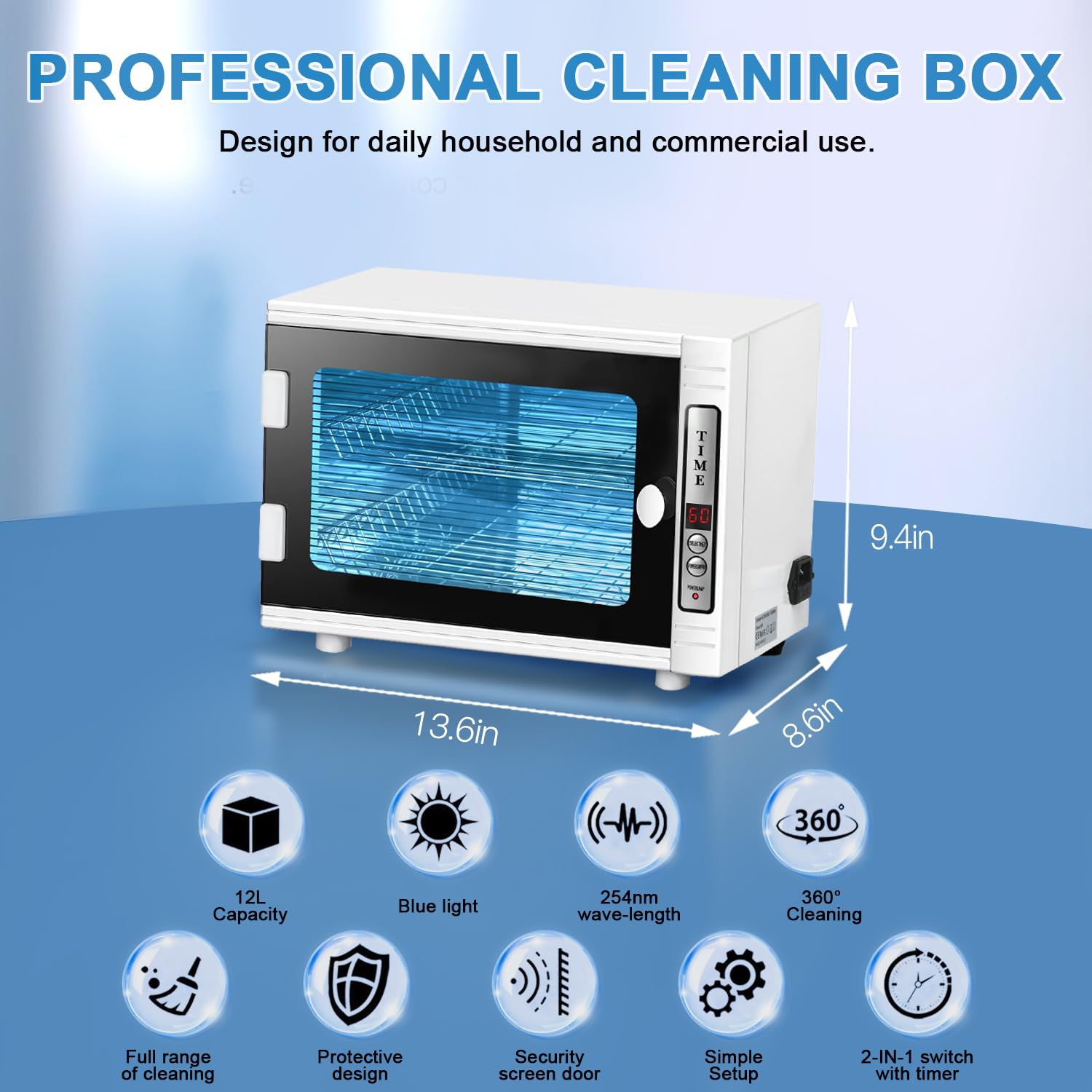 - 💎【Led Time Display】The manicure cleaning box with a two-button setting, you can set the cleaning time from 5-60 minutes (5-minute intervals) according to your requirements to meet different needs. LED display and see-through window provide an easy check on the working process. With the Oven Pro there’s no having to turn objects over or run your machine multiple times, and no tiny box barely larger than a cell phone.