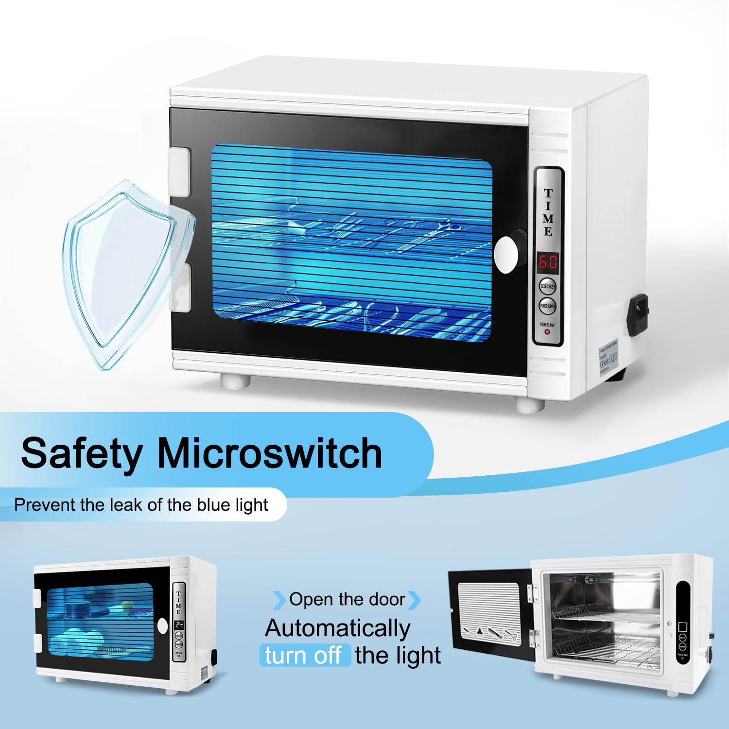 - 💎【Protect Your Healthy and Stuff】The oven pro uses blue light, not heat, so it is safe for all objects. The tight-fitting polarized door means no exposure to people in the room from the lamp. The Cleaning Machine have a smart induction switch which can be automatically turned off the LED light when you open the door cover, it won't hurt your eyes and skin, The inside of the device uses light, not heat, its safe for all items.
