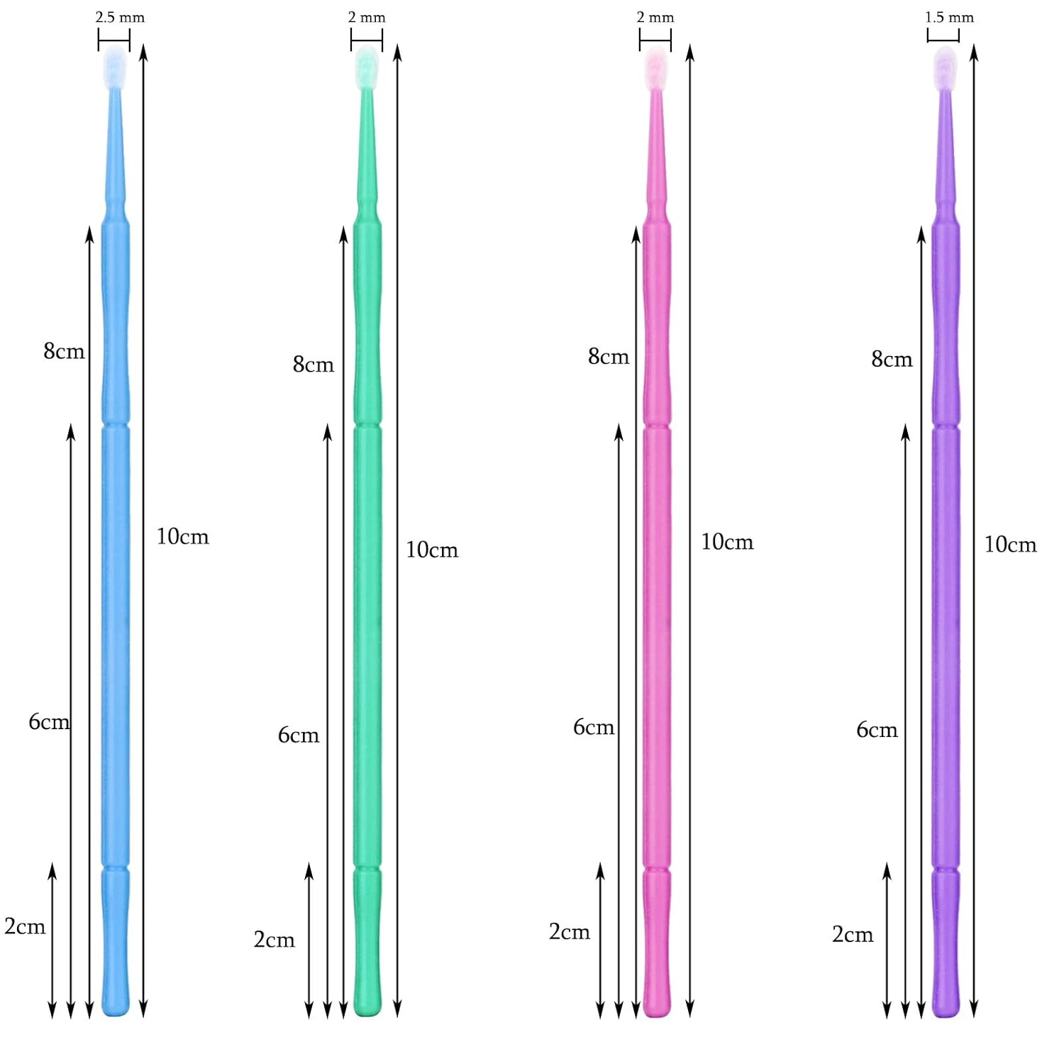 - Microfiber Tips And Plastic Handle; Length:10cm / 3.9β,Head Diameter: 2.0mm/Medium Size(Pink); Package Includes 500pcs Micro Brushes, And Every 100pcs In A Clear Plastic Bags Which Keeps Them Clean And Tidy.