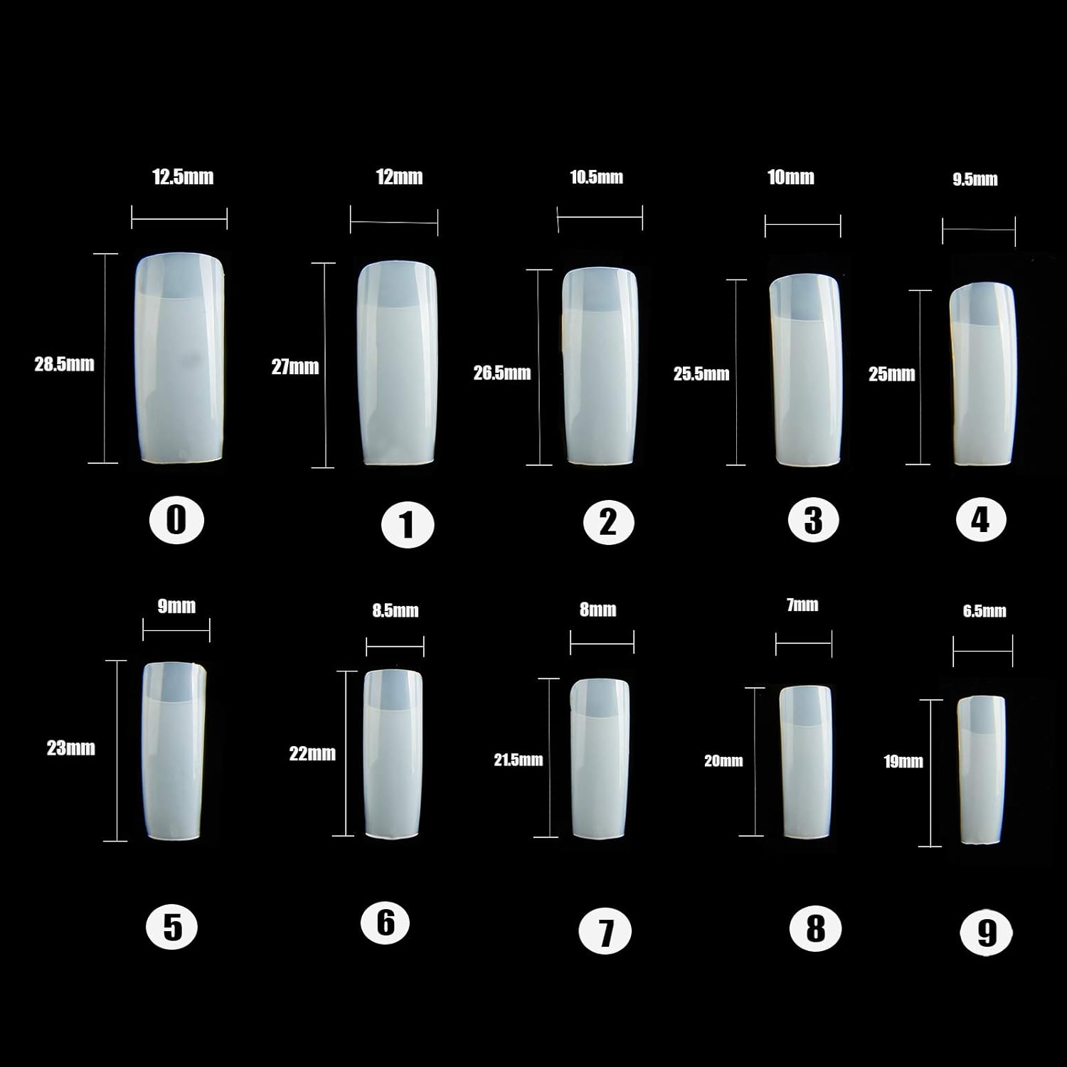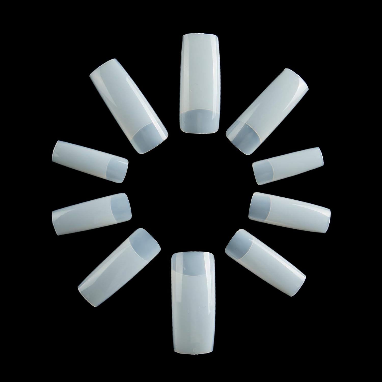 Half Cover Acrylic False Nail Tips, 500PCS Fake Nail Shape Artificial False Nails Tips 10 Sizes with Case for Nail Art Salons (Natural)