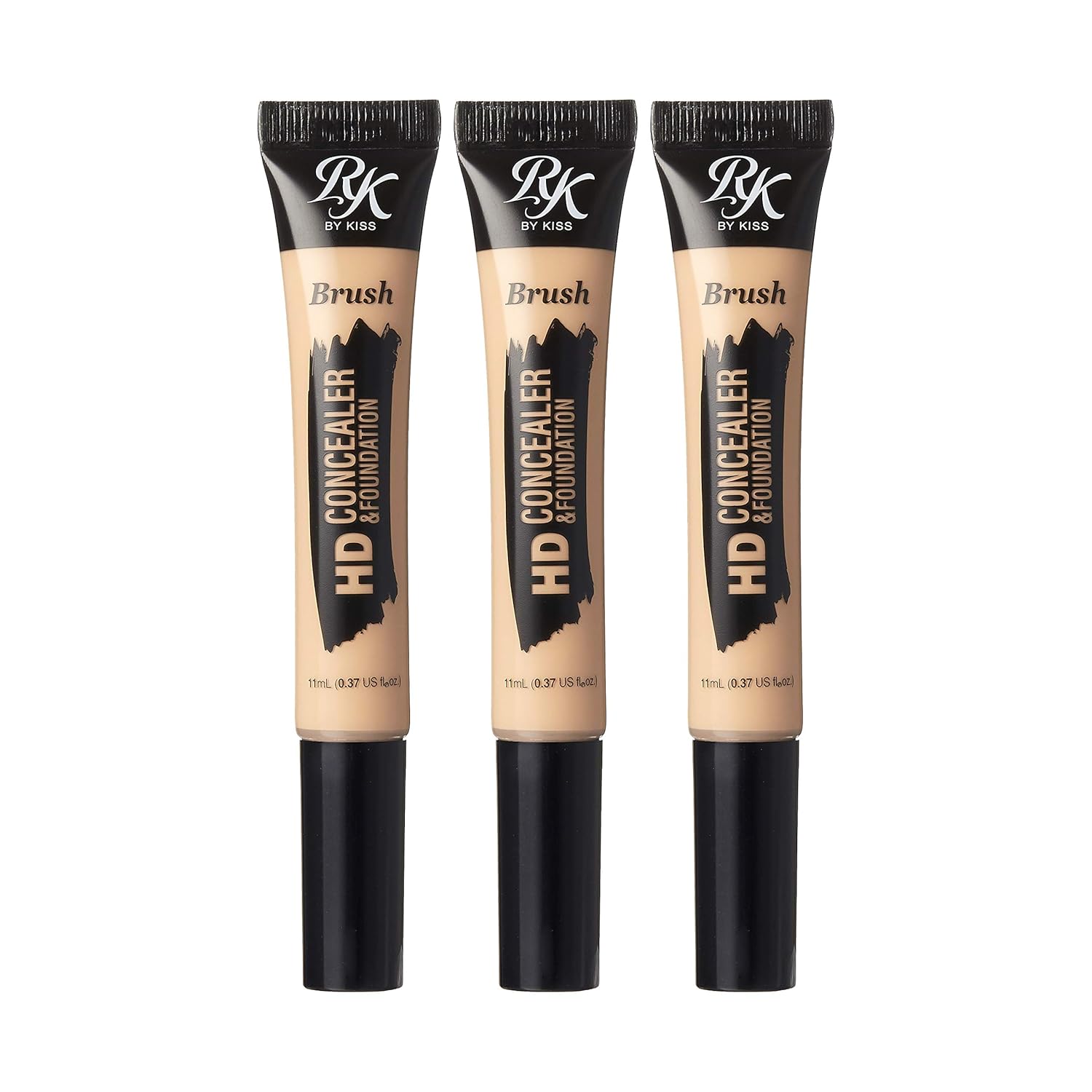 Ruby Kisses HD Concealer & Foundation Brush Flawless Full Coverage Face Makeup Lightweight Highlighter Long Lasting Under Eye Conceals Contour Corrector 3 Pack (Light Ivory)