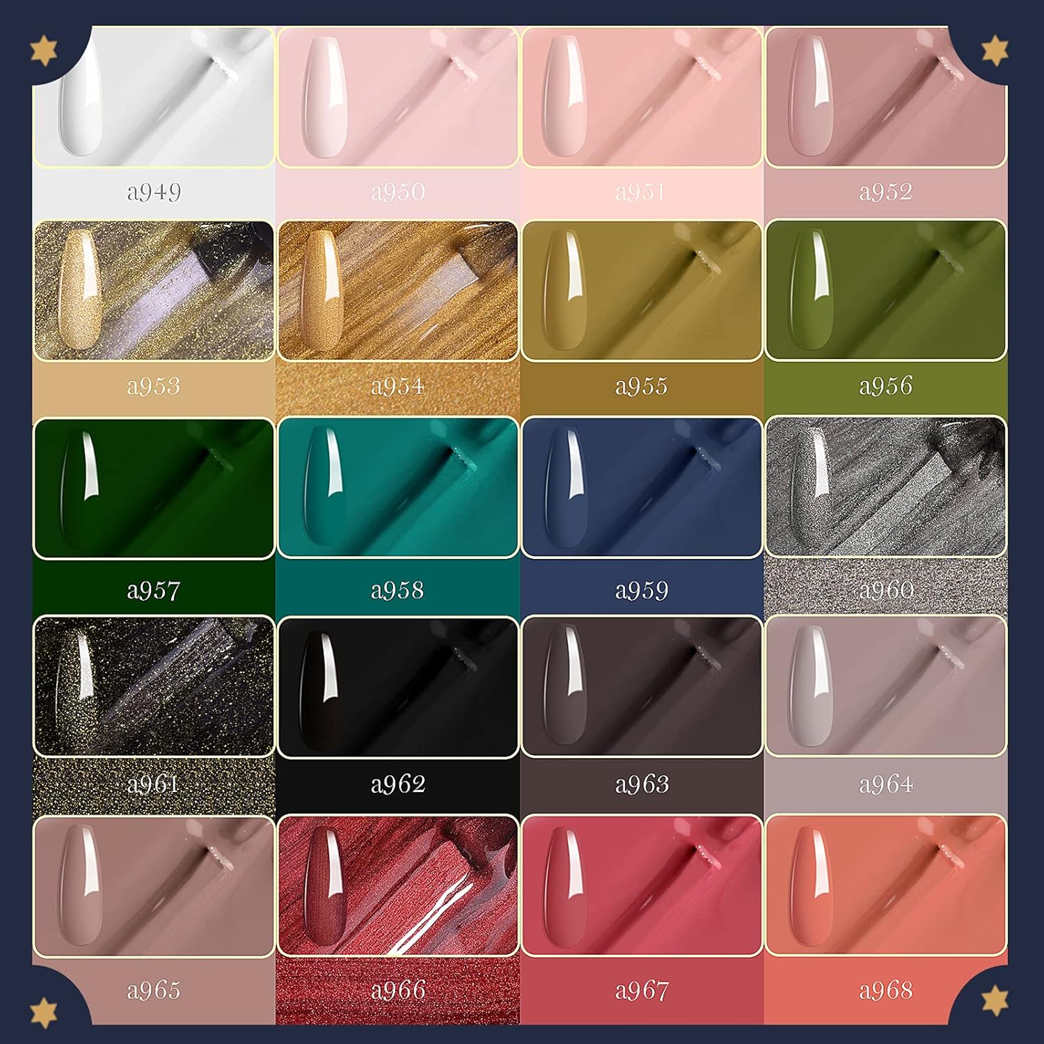 Beetles Fall Gel Nail Polish Kit with Base Top Coat, Neutral Nude Brown Pink Grey Green White Black Glitters Gel Polish Set Soak off UV Led Nail Art Winter Manicure Gift for Women