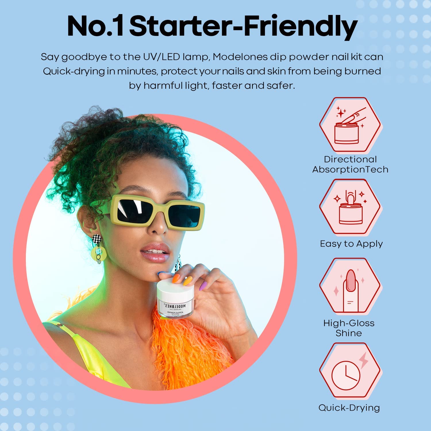 - 🤍SAFETY & TIME SAVING: MODELONES Clear Dip Powder doesn’t need nail lamp to cure, which can avoid making your skin black. It's a faster way to paint your nails.