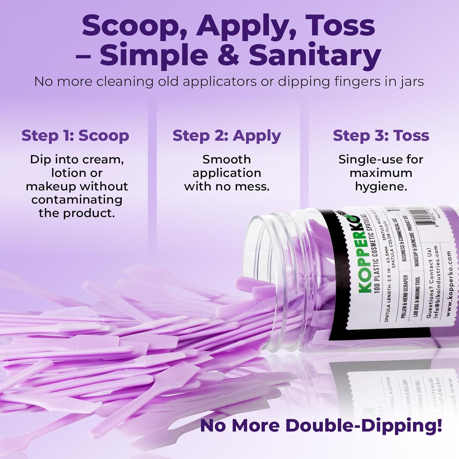 - Personal & Commercial Use: These 2.5" spatulas are perfect for essential oils, face masks, creams, or lab samples. Ideal for moving large quantities of wholesale or homemade lotions, gels, or serums, these spatulas are professional, and presentable