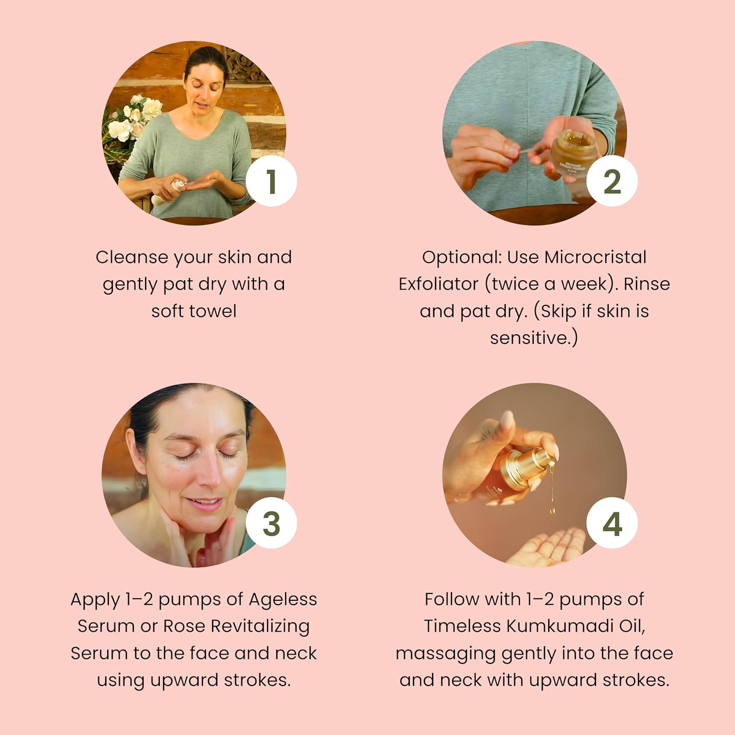 - Embrace Timeless Skin with A Good Cause – 100% of the profits from every bottle of Timeless Kumkumadi Oil are donated to support meaningful causes. Unlock the key to timeless beauty, while you become a part of our commitment in making a positive impact. Incorporate it into your daily regimen and witness the magic as your complexion shines with a golden glow that’s just as lovely now as it was in ancient times.