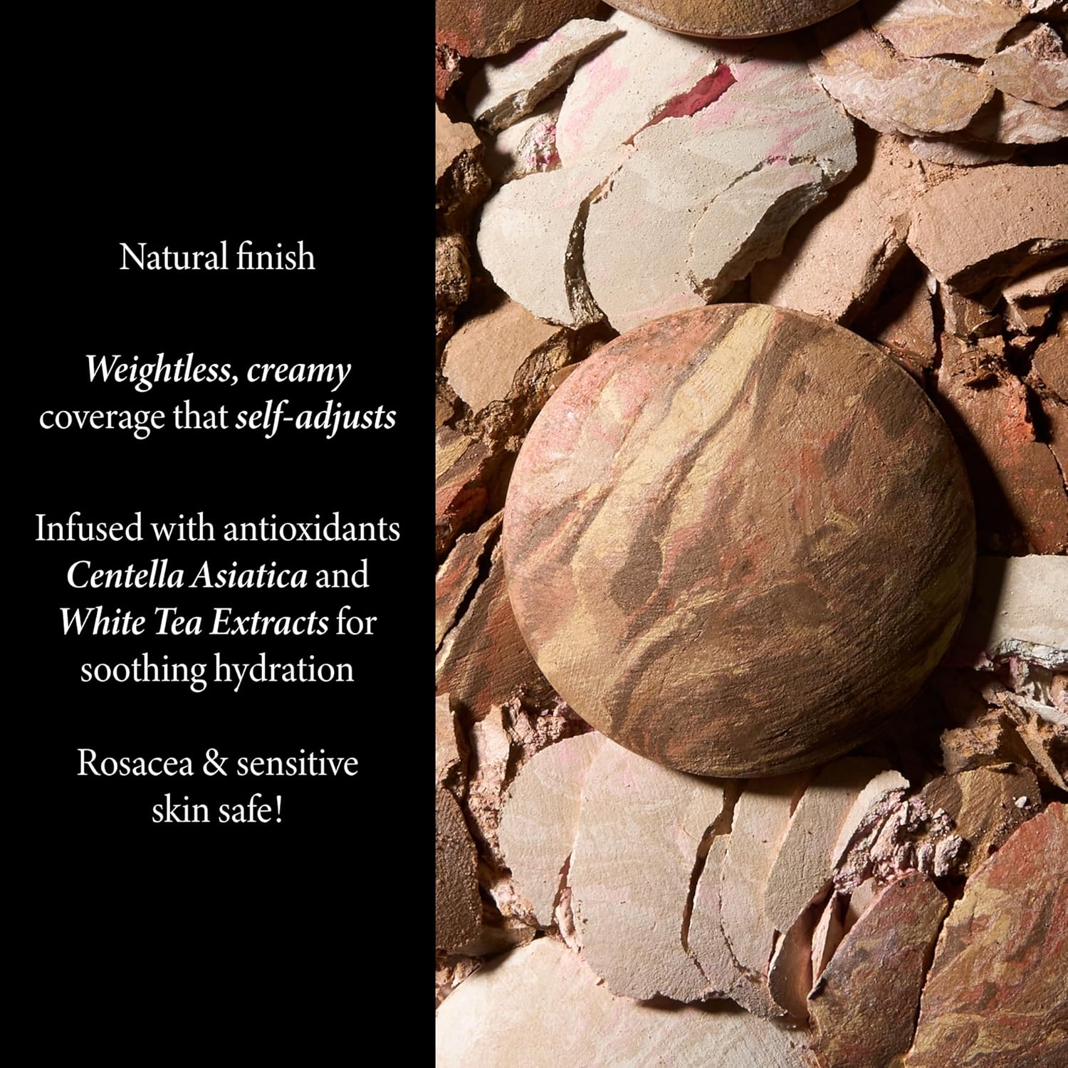 - SELF-ADJUSTS TO MATCH YOUR SKIN TONE: Color correcting swirls of multicolored liquid pigments are baked for 24 hours on terracotta tiles and hand-finished in Italy. Infused with antioxidants Centella Asiatica and White Tea Extract for soothing hydration throughout the day.