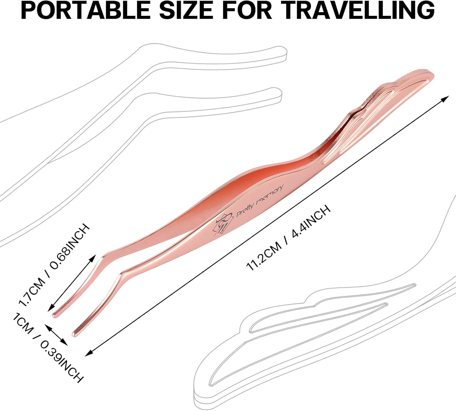 Pretty memory Eyelash Applicator Tool Stainless Steel Lash Tweezers Curved Eyelash Tweezers for Easy Lash Application and Removal, Rose Gold
