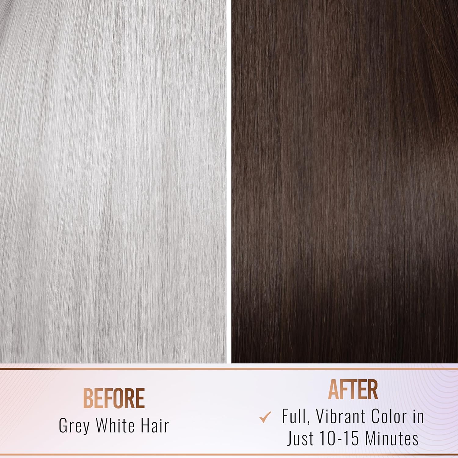 - LONG LASTING GREY COVERAGE β Give your greying hair a new lustrous, vibrant, and young look, while replenishing the lost health of weak strands with Herbishh Hair Color Shampoo for Grey Hair. With a special combination of active botanicals, our hair color shampoo dye is sure to give your hair a deep Dark Brown color that will last up to 2 to 3 weeks