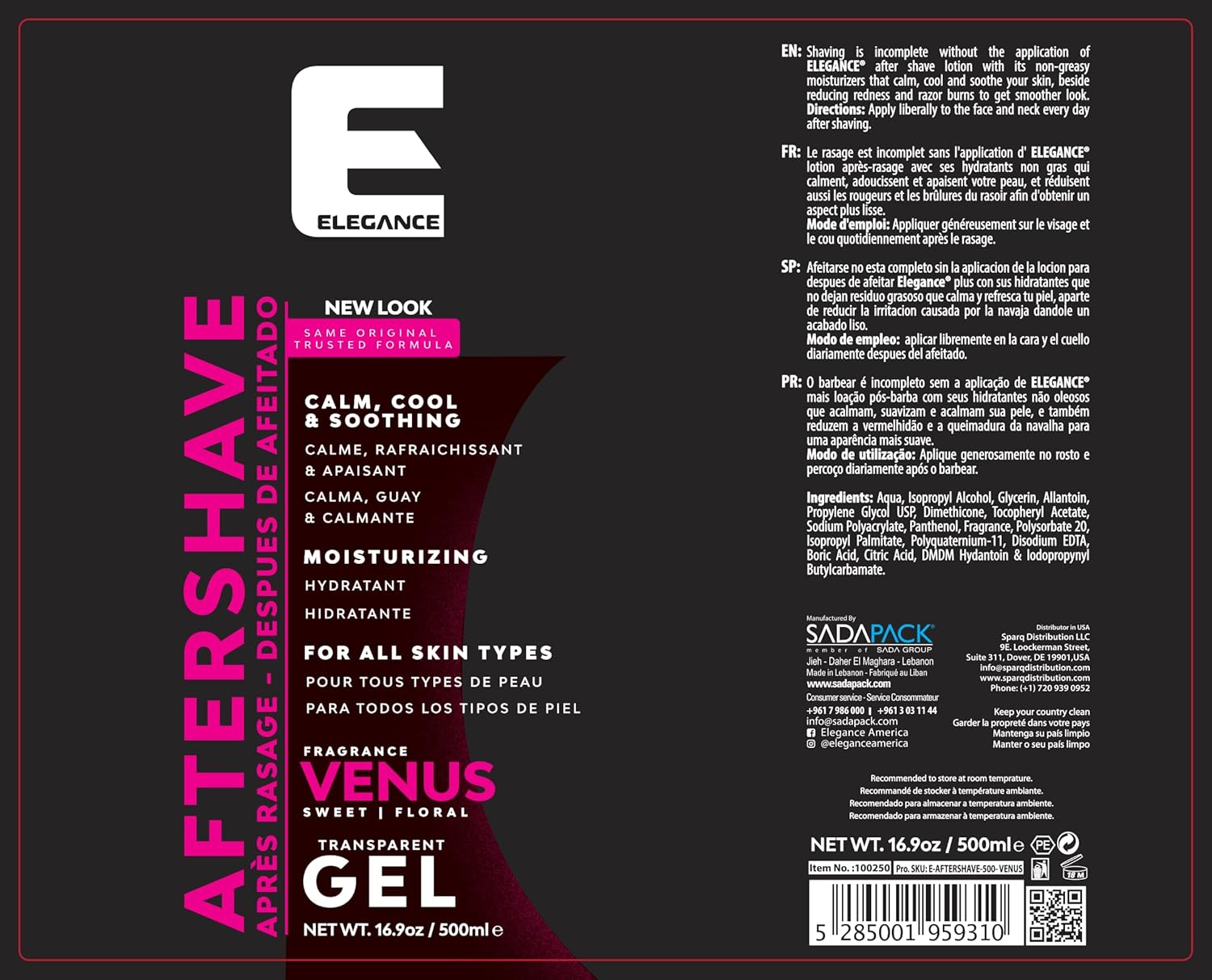 Elegance After Shave Lotion for Men, 500ml, Venus (Pink), Real Shaving Relief, After Shave that Hydrates and Revitalizes your Skin, 16.9 Oz Venus Pink)