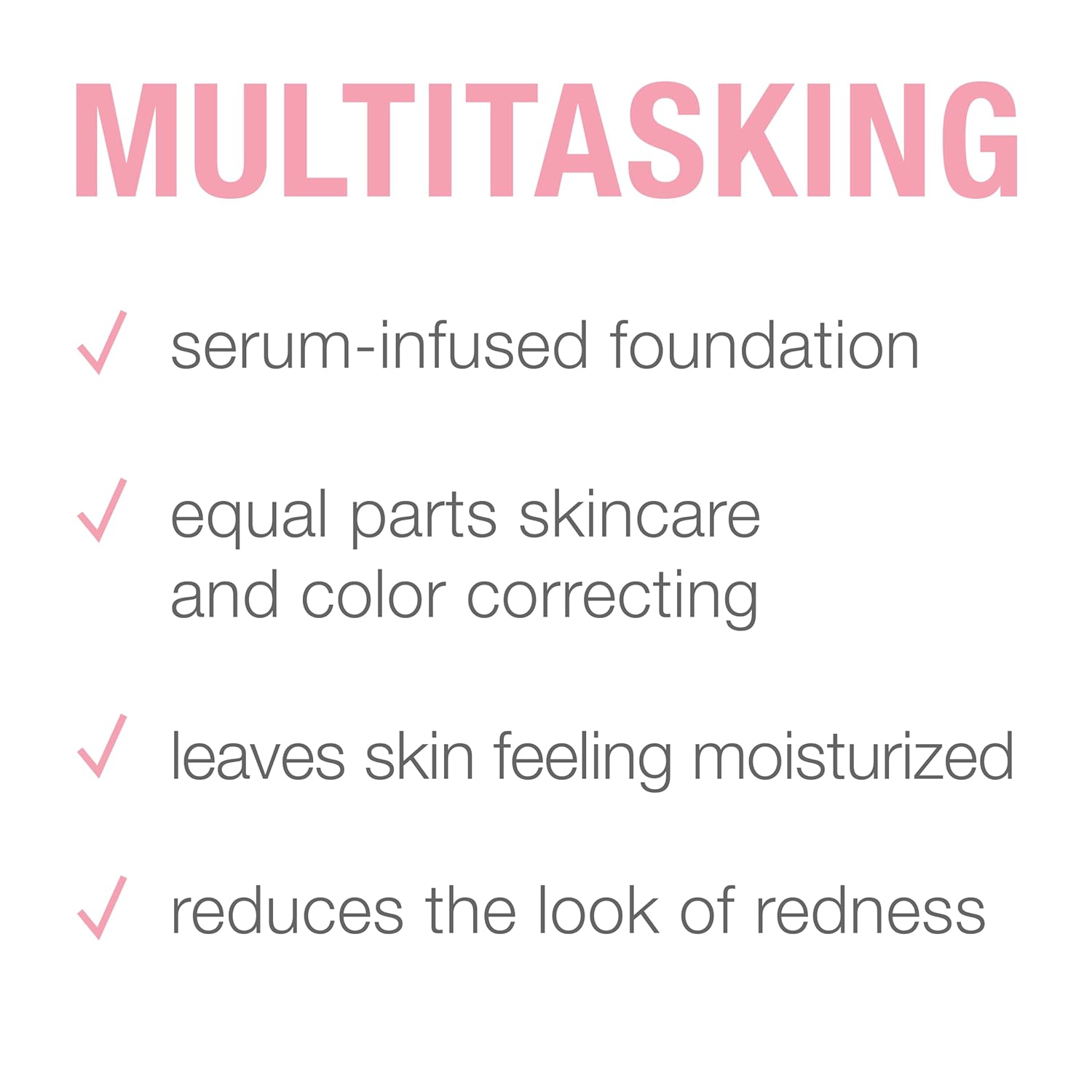 - Sheer buildable coverage foundation is infused with multitasking serum to care for your skin. This color correcting liquid makeup sensitive skin foundation is designed to reduce the look of redness