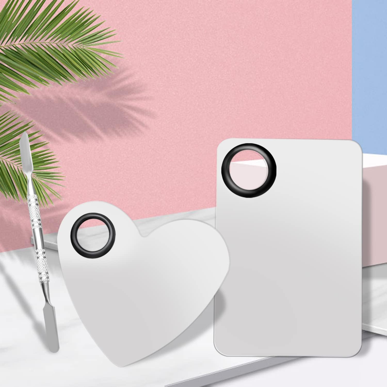 • What you will get: We will provide you with 2 pcs makeup mixing palette, one heart-shaped, one rectangular, plus 2 makeup spatula. The appearance is simple and elegant, and it is smooth to use. Two sets to meet your daily use needs.
