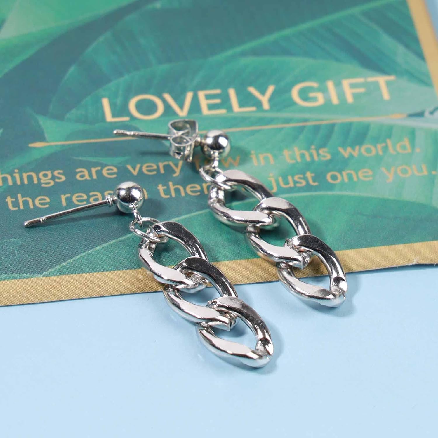 Punk Link Chain Earrings Silver Cable Link Earrings Curb Chain Drop Earrings Minimalist Statement Earrings Jewelry for Women and Girls Gifts