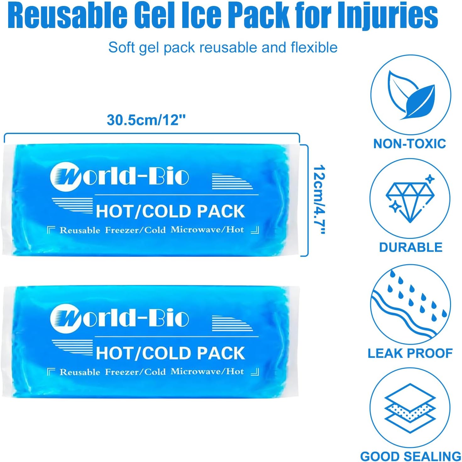 - FLEXIBLE ICE PACKS: The hot cold packs for injuries reusable includes 2 gel packs, with size 12.2" x 4.7". Easily alternate between hot and cold therapy when needed. Ease the discomfort caused by swelling, inflammation, cramps, muscle aches, joint pains.