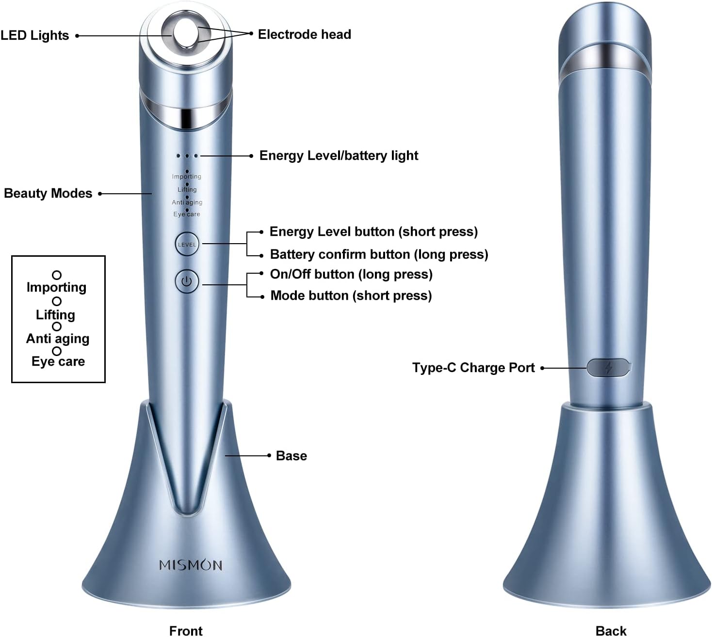 - Rechargeable and Handheld Design---Small size and light weight design allows to carry it anywhere, you can enjoy your own professional skin care salon at home or travel.