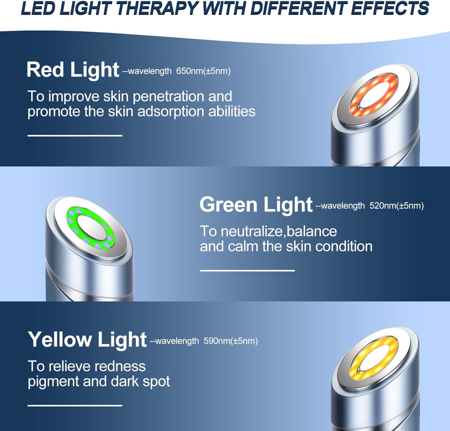 - LED Phototherapy Light Therapy--- This Facial massager has three different colors light for different functions, which can meet your needs.