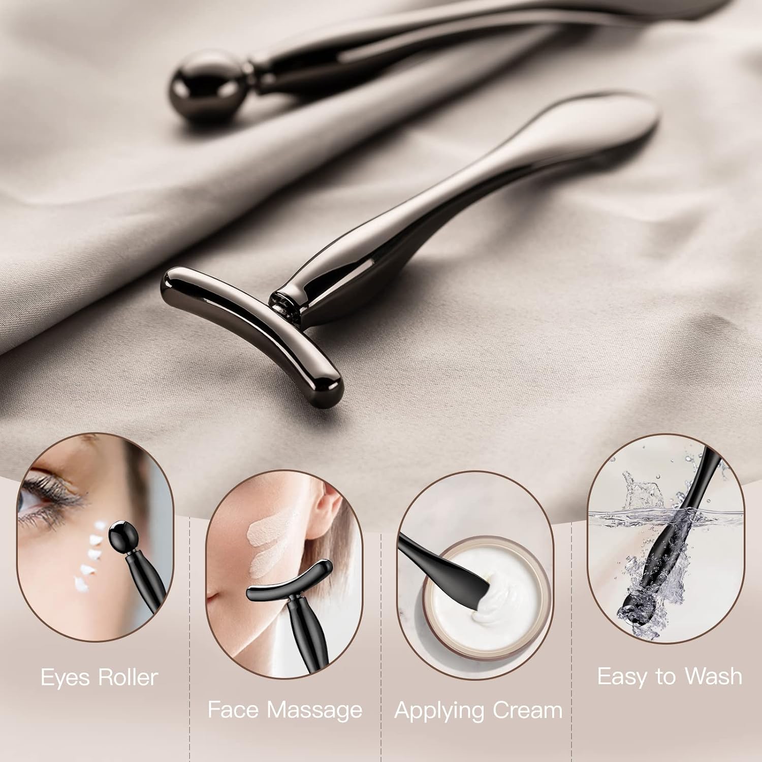 Lisapack 2PCS Metal Eye Cream Applicator Wand Stick, Massager Tool for Facial Massage, Reduce Puffiness (Champagne)