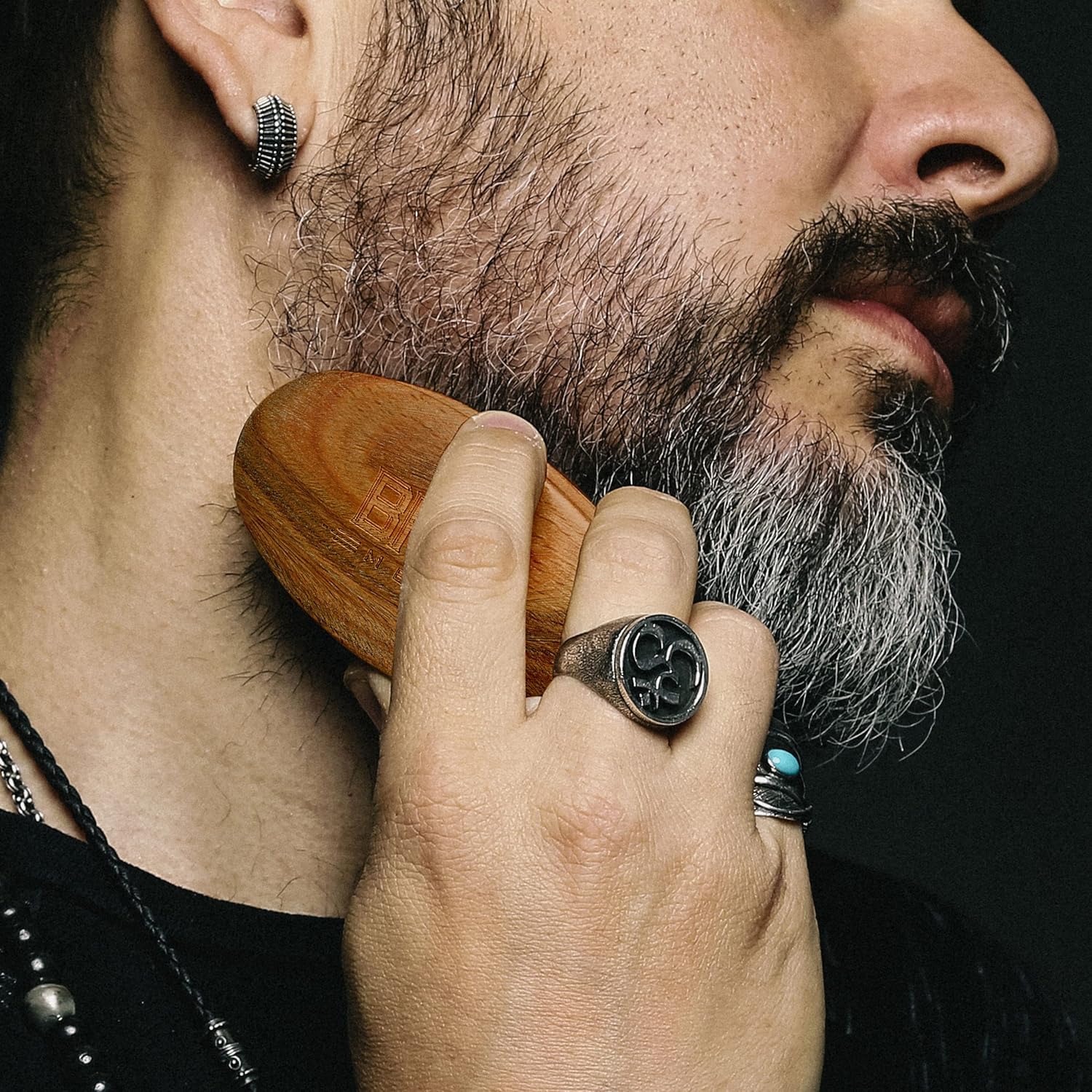 - ERGONOMIC HOLD - The ergonomics of the BRV MEN beard brush seamlessly match the aesthetic look and superior quality of its 100% first-cut boar bristles. At 3.6βx2βx1.5β the brushβs dimensions provide an ideally comfortable handhold for frequent use. And meanwhile, an extra thick handle sculpted from green sandalwood with indented hand grooves delivers a perfect hold as the bristles do their work.