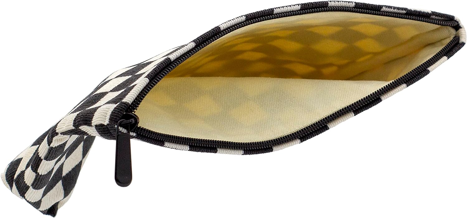PAZIMIIK Makeup Bag Large Zipper Corduroy Make Up Pouch for Purse Travel Canvas Cosmetic Organizer for Women Brush Storage,Checkered Black
