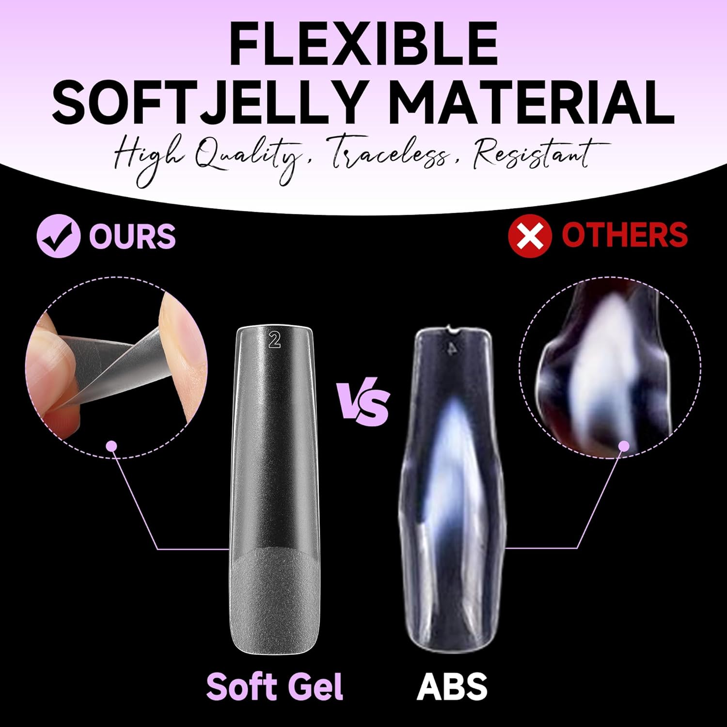 - ❤️Professional Long Square Shape Tips: Great extension Long Square fake tips show a great clear cover with premium innovate material soft gelly tips can be used with nail polish, dip powder, acrylic acrylic powder, easily make salon nail effect instead of dropping money at expensive salon!