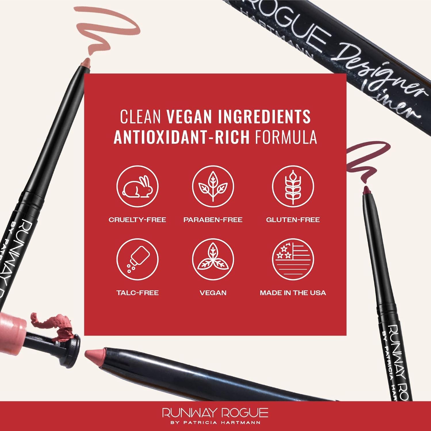 - RUNWAY WORTHY, MADE FOR REAL LIFE: Founded by ’90s supermodel and cover girl Patricia Hartmann, who was mentored backstage by makeup legends, Runway Rogue creates luxurious, easy-to-use lip products for on-the-go women who desire the runway look without the runway hassle. Elevate your every day with Runway Rogue, where glamour meets convenience, and make every moment your real-life catwalk.