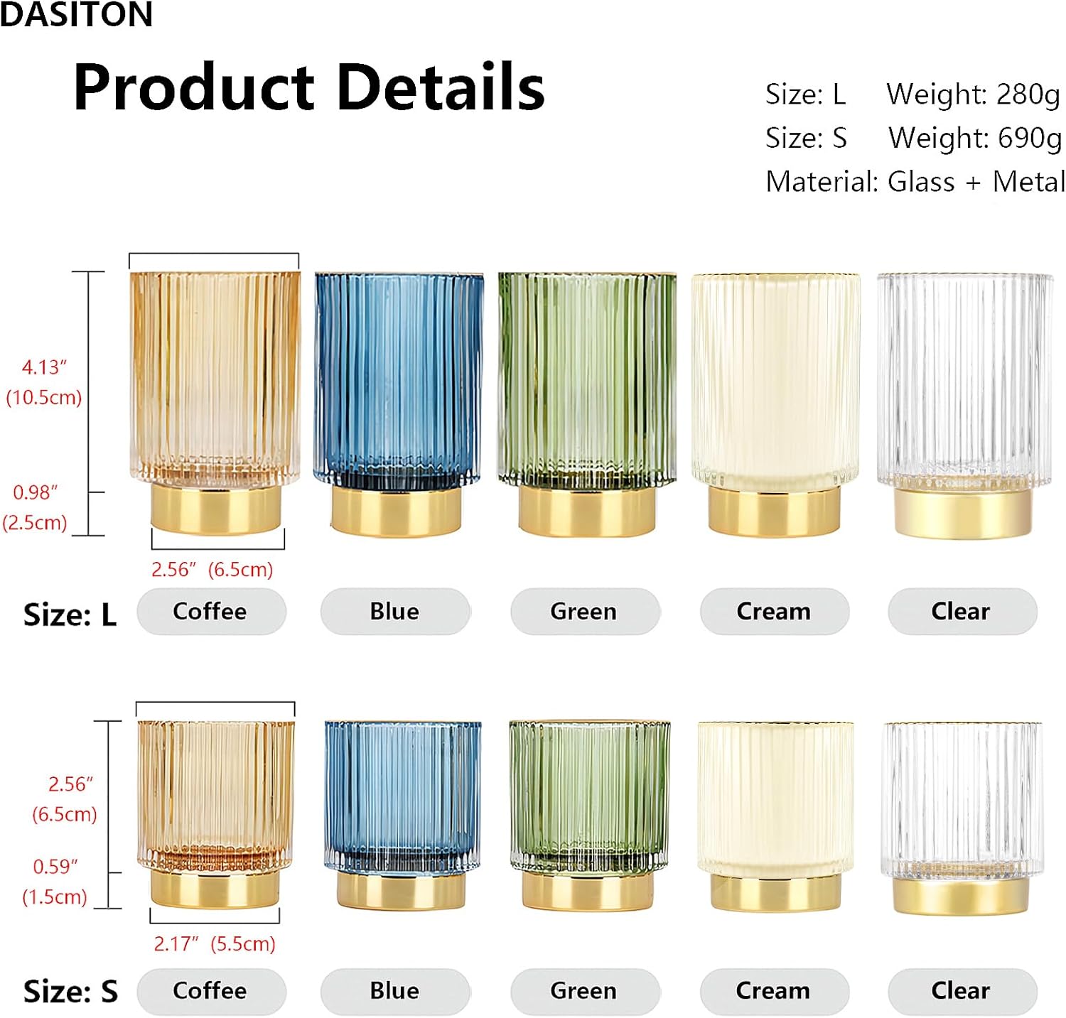 DASITON Makeup Brush holder Organizer,Crystal Cosmetic Makeup Brush Glass Brushes Storage Holder, Vintage Make Up Brush Cup Pen Pencil Holder striped vase(Green L)