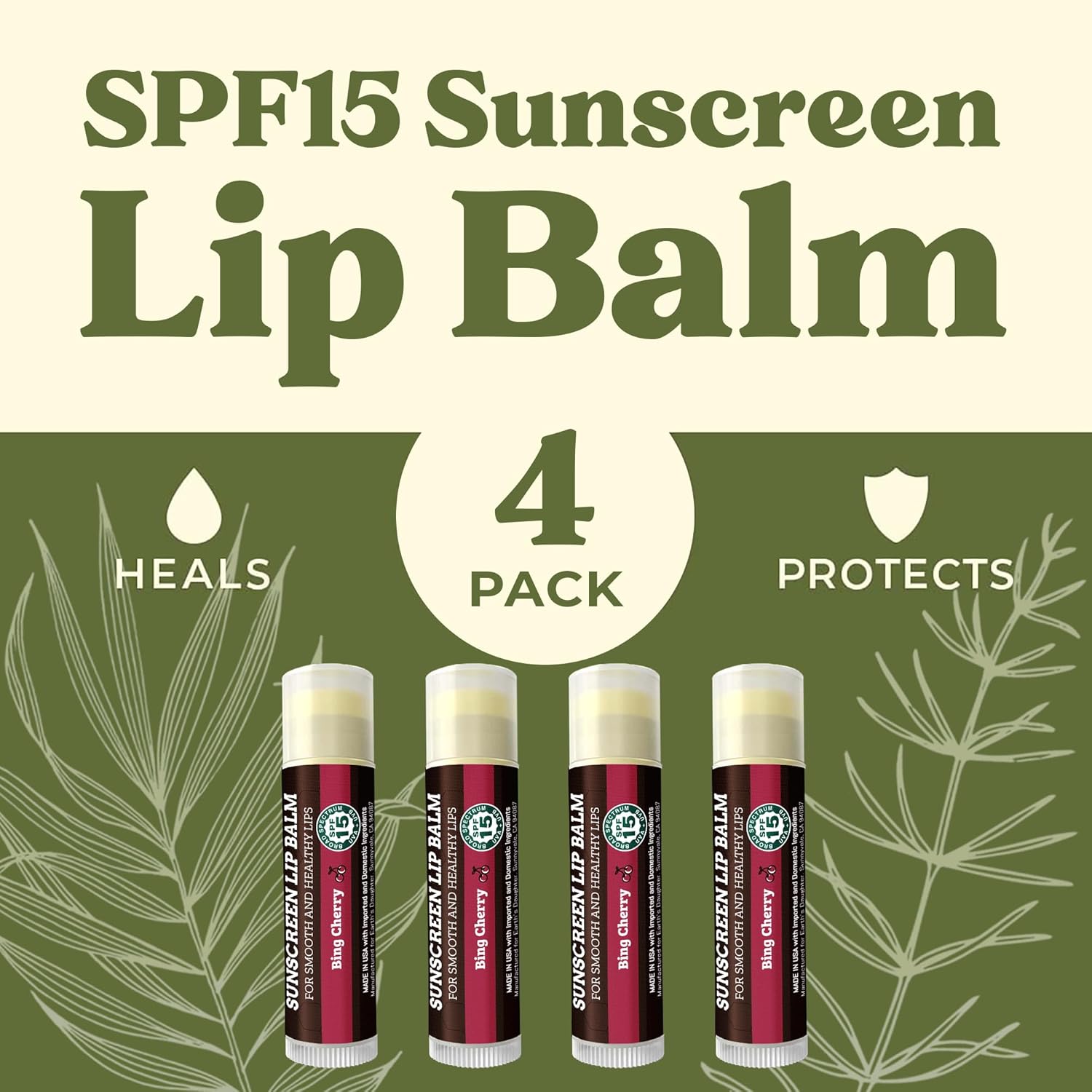 - 4 PACK of SPF 15 SUNSCREEN LIP BALM โ Delicious Cherry Flavor. Everyone loves our cherry lip balm with SPF 15 sun protection, organic beeswax, organic coconut oil and other premium organic hydrating ingredients to protect and moisturize all day long. Our lip balm is great for everyday protection and safe for the whole family