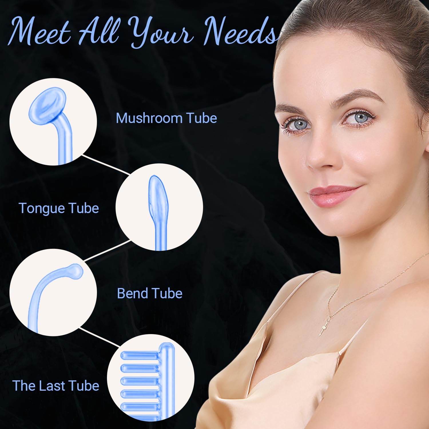 High Frequency Facial Wand - UUPAS Portable Handheld 4 in 1 Blue High Frequency Skin Facial Machine with 4 Pcs Different Blue Tubes for Home Use Face Device