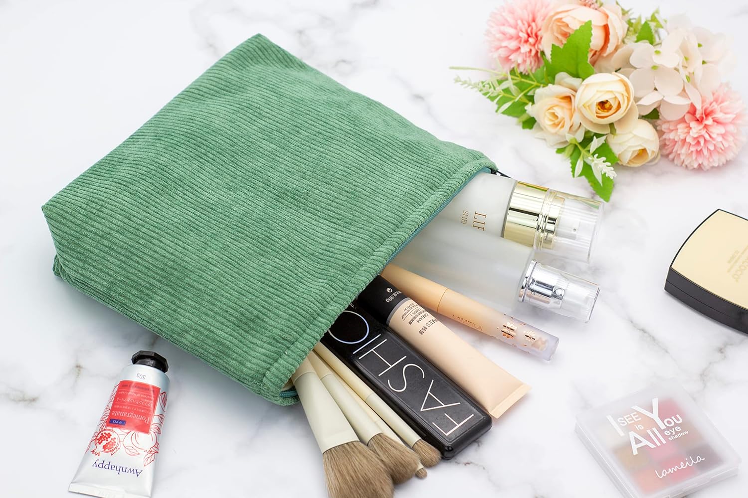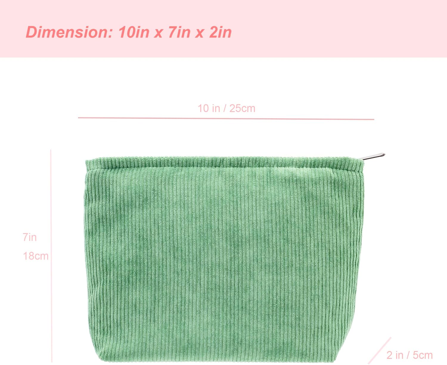 PAZIMIIK Makeup Bag Large Zipper Corduroy Make Up Pouch for Purse Travel Canvas Cosmetic Organizer for Women Brush Storage,Green