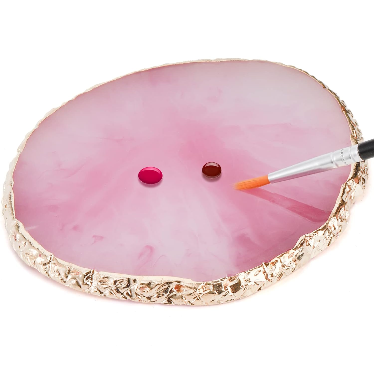 ZOOFOX 6 Pieces Resin Nail Art Palette, Nail Art Painting Mixed Color Palette with Gold Edge, Nail Gel Color Makeup Display Board
