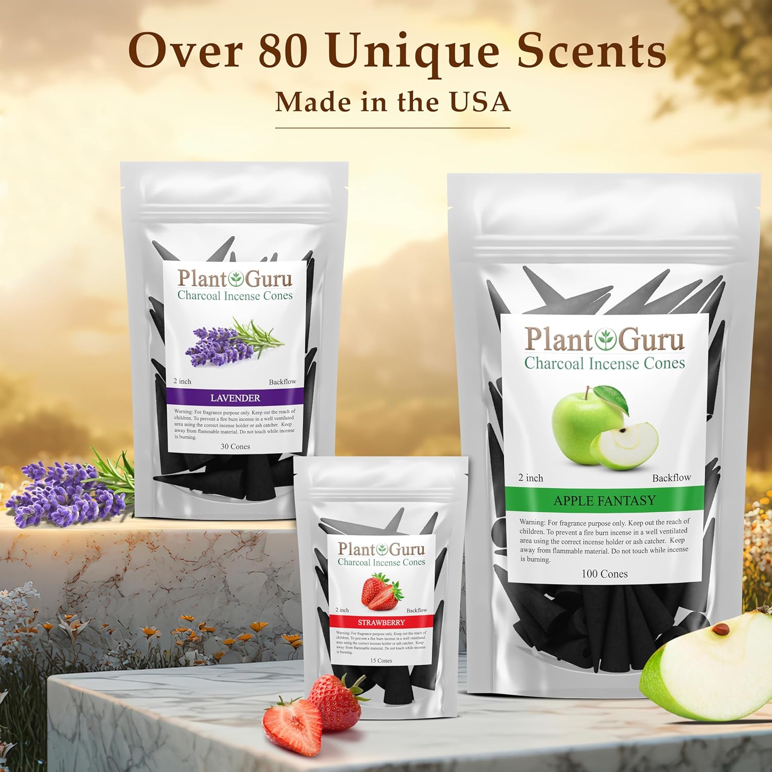 - β MADE IN THE USA - 60 Cones Per Pack - Hand dipped daily using premium grade fragrance Oils. Each cone is 2'' inches long and made of high-quality charcoal. Hand dipped for 48 hours. Burns time is approximately 25 to 30 minutes.