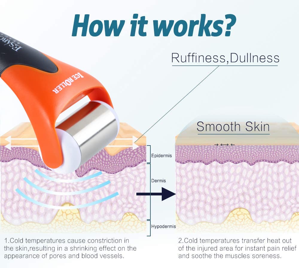ESARORA Ice Roller for Face & Eye, Puffiness, Migraine, Pain Relief and Minor Injury, Skin Care Products - Black Orange (1 Plastic Roller & 1 Stainless Steel Roller)