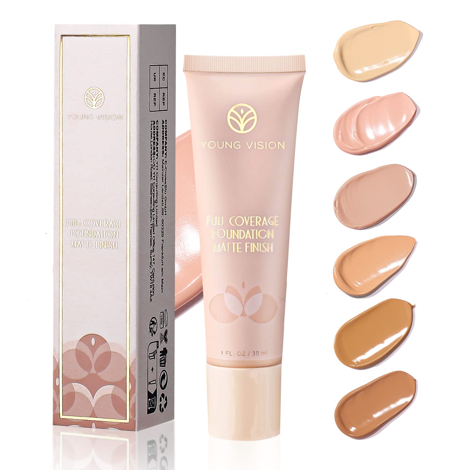 YOUNG VISION Full Coverage Longwear Foundation, Matte Finish, Waterproof, Poreless Liquid Foundation Makeup, Base de Maquillaje Alta Cobertura, 1 fl.oz
